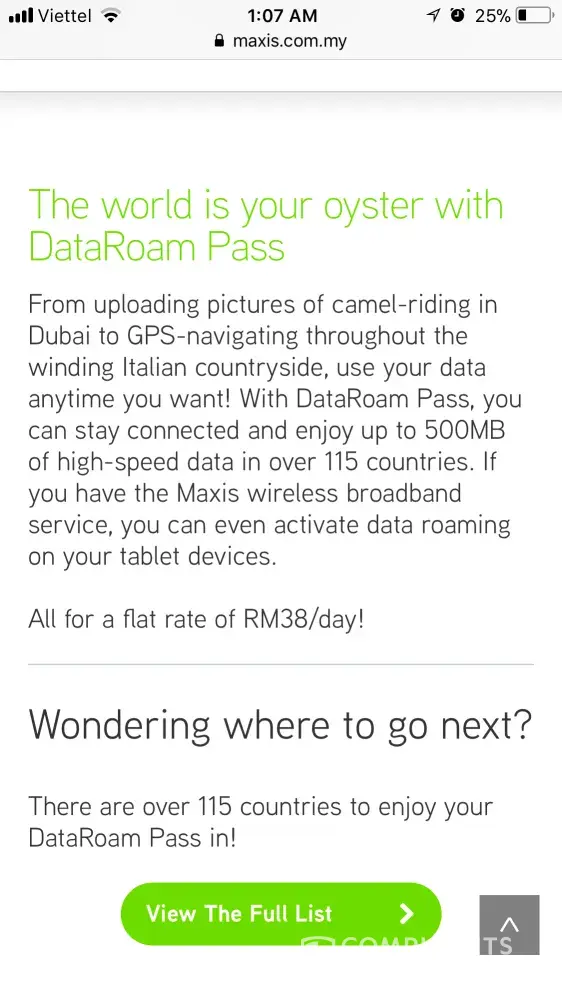 I tried to check on Maxis roaming rate on Maxis webpage but apparently I was lead to main page where all promotional sweet words are displayed as per attached photo. I was misled by the 500MB roaming at RM38/day, and I checked full list of countries, Vietnam is one of them.