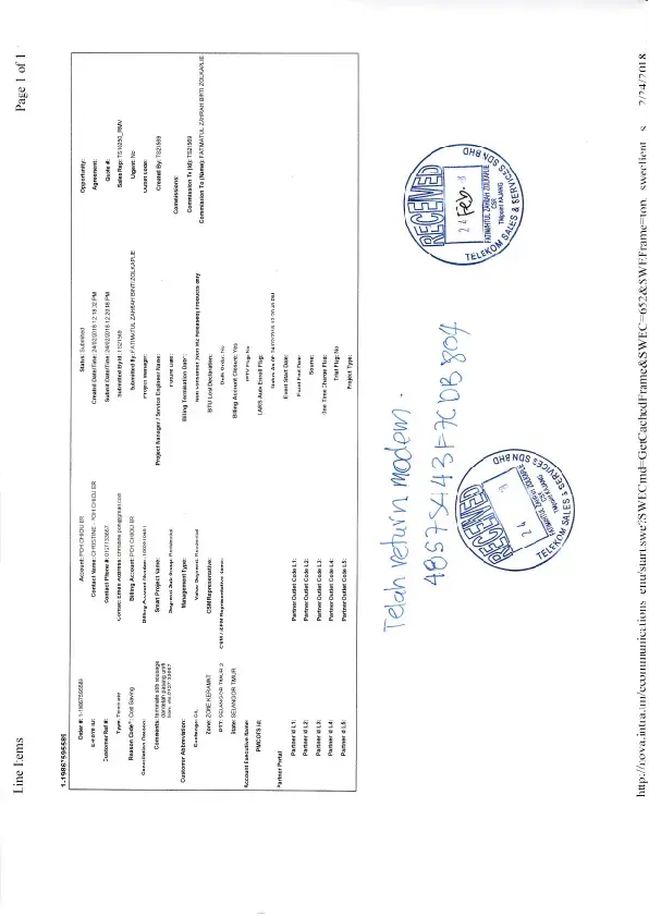 26Feb18 (5.58pm) Recd called fm Robin and was again chided for returning the modem. He advised me I have to provide evidence of modem returned and advise TAT for consideration of getting modem will take another 5-6 days