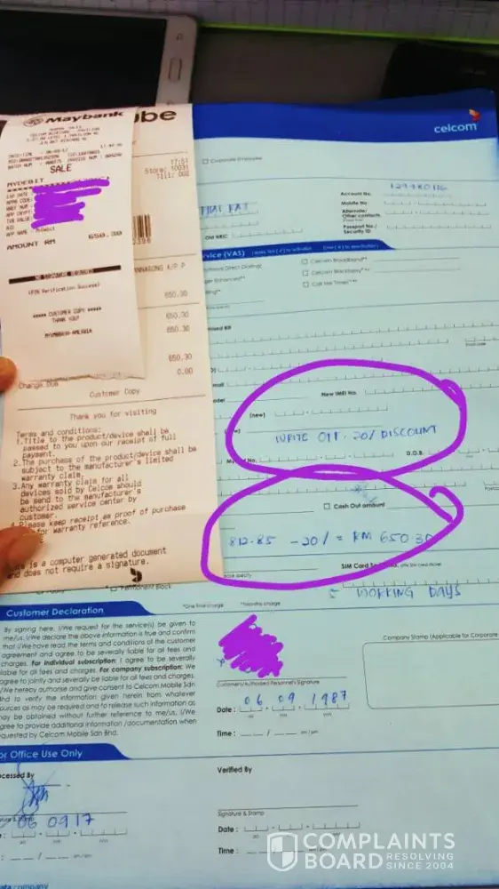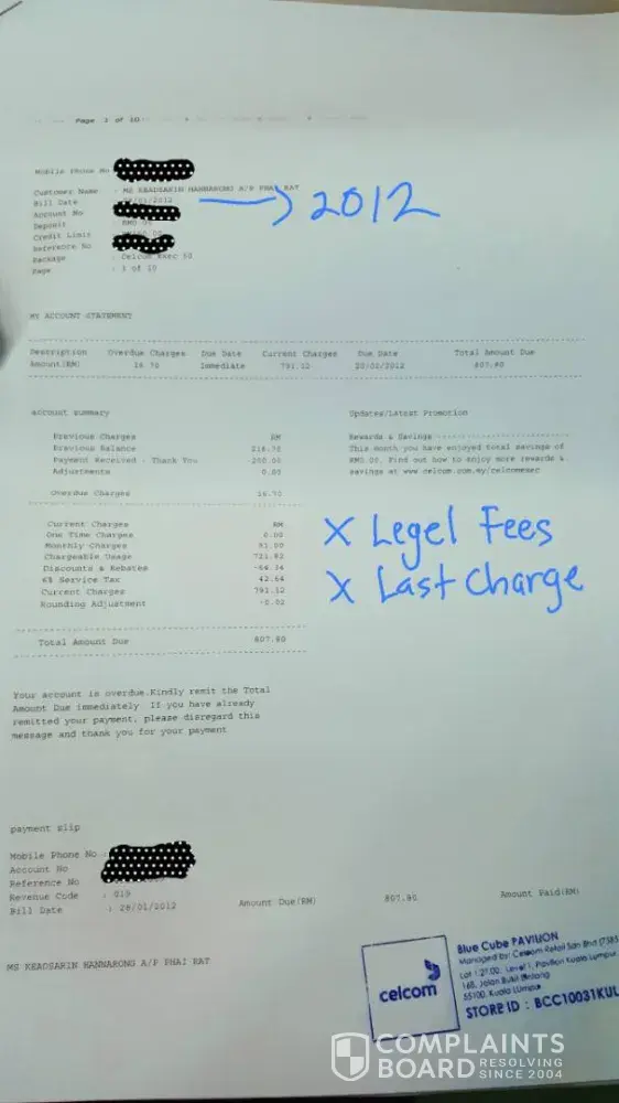 and I asked him again LEGEL FEES RM100+LAST CHARGE RM107.85 can waive or not because I never knew or notice that I still have this debt with maxis and I never received the letter from maxis until I take initiative to call maxis call center and he turn to Ms Suriani (I don't know what her position but she is not a pro customer service staff) I asked if I go settle in KLCC maxis branch do I will get the discount, in a very unprofessional way she answer "mana-mana brand pun sama xde ape beza pun. Kalau dia nak sangat details ke ape ke u suruh je dia call je [protected] call je [protected]" and keep repeating the same thing to Mr Shakir and never turn to me even I the only one customer standing at the counter and she walk away like that only. But Mr Shakir kept bowed head and said i'm sorry miss, if u felt like this amount is not fair you u have right not to make payment and u may walk in to KLCC maxis center to try to settle the amount there in very polite way. Wow he is amazing, his services is marvellous can calm me down and witout delay and I wasted his time for almost 30-40minute so I made decision to settle this amount in Pavillion Maxis center because of his good services. By the way can anyone help me check if case like this do you will have refund like celcom did? as one of my friends friends who work with maxis before told me it depend on their branch manager. Some branch will give discount. The purpose I write this up to complaint Ms Suriani and to give compliments to Mr Shakir on the same time to ask for some refund. When I face this now I know y thousands of Malaysian not Happy with Maxis as Customers and alot customer throw rampage at the center or branch. Attached celcom receipt as a proved with the details celcom staff give me immediately