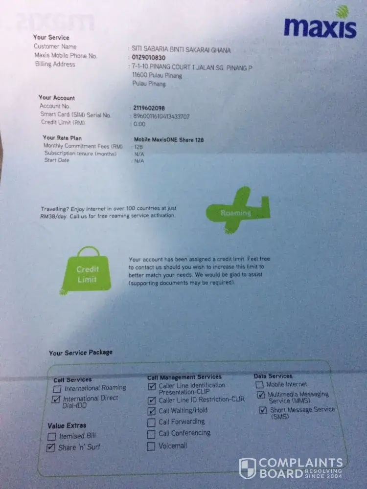 I went to Maxis Centre in KLCC sometimes in April 2016 providing all the information (my credit card statements and my contact details) but until today nobody from Maxis contact me, almost a year now. On the same day I have cancelled my said credit card as the Customer Service that took on my case said that there is no record showing 'where is the auto billing of RM29.90 gone to' and upon further checking it is confirmed that I do not have any outstanding amounts nor have an active account with Maxis.
