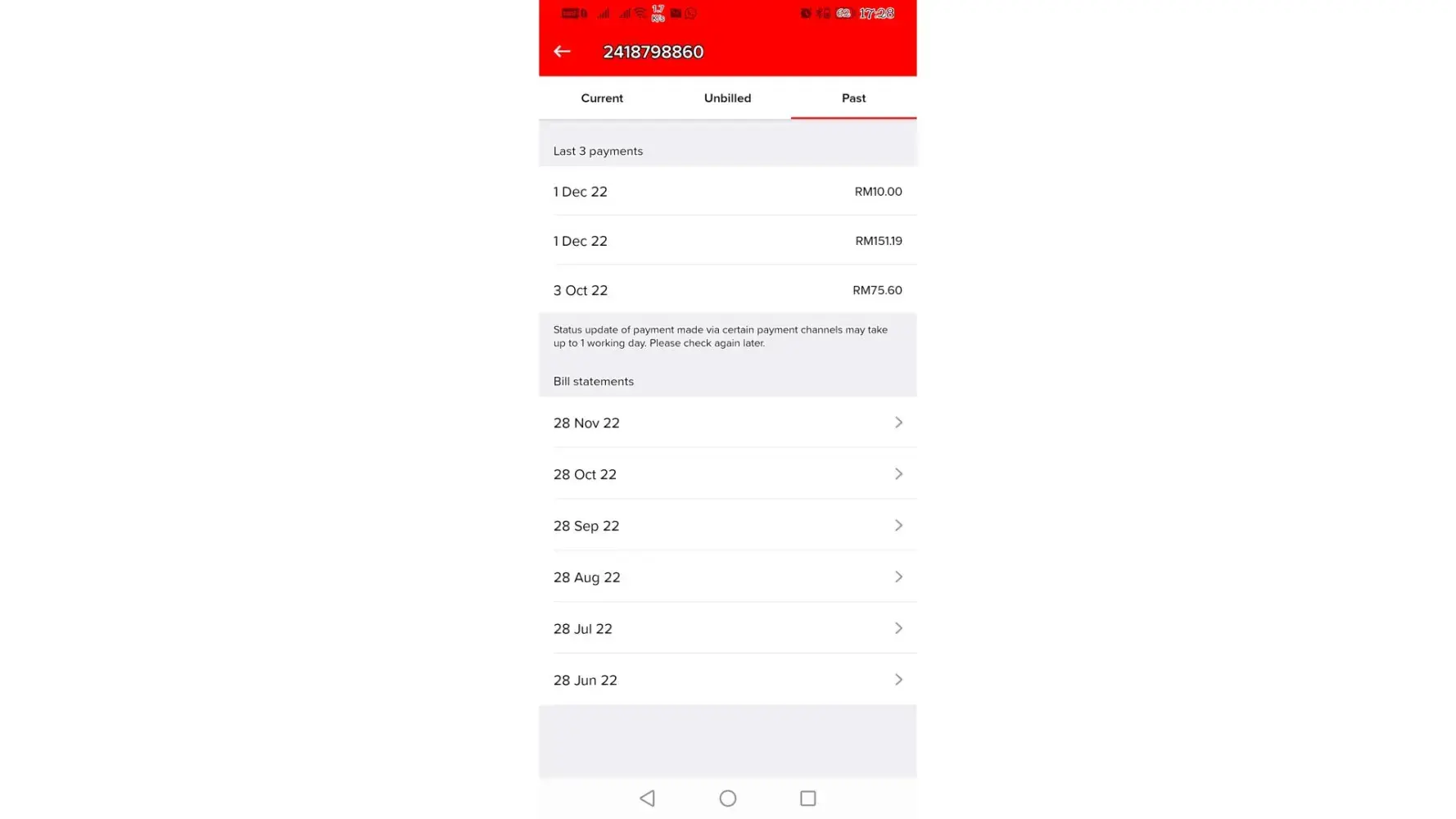 Already settle the bills during last bill cycle and now already come to others payment cycles. I feeling was cheating by the service at all.