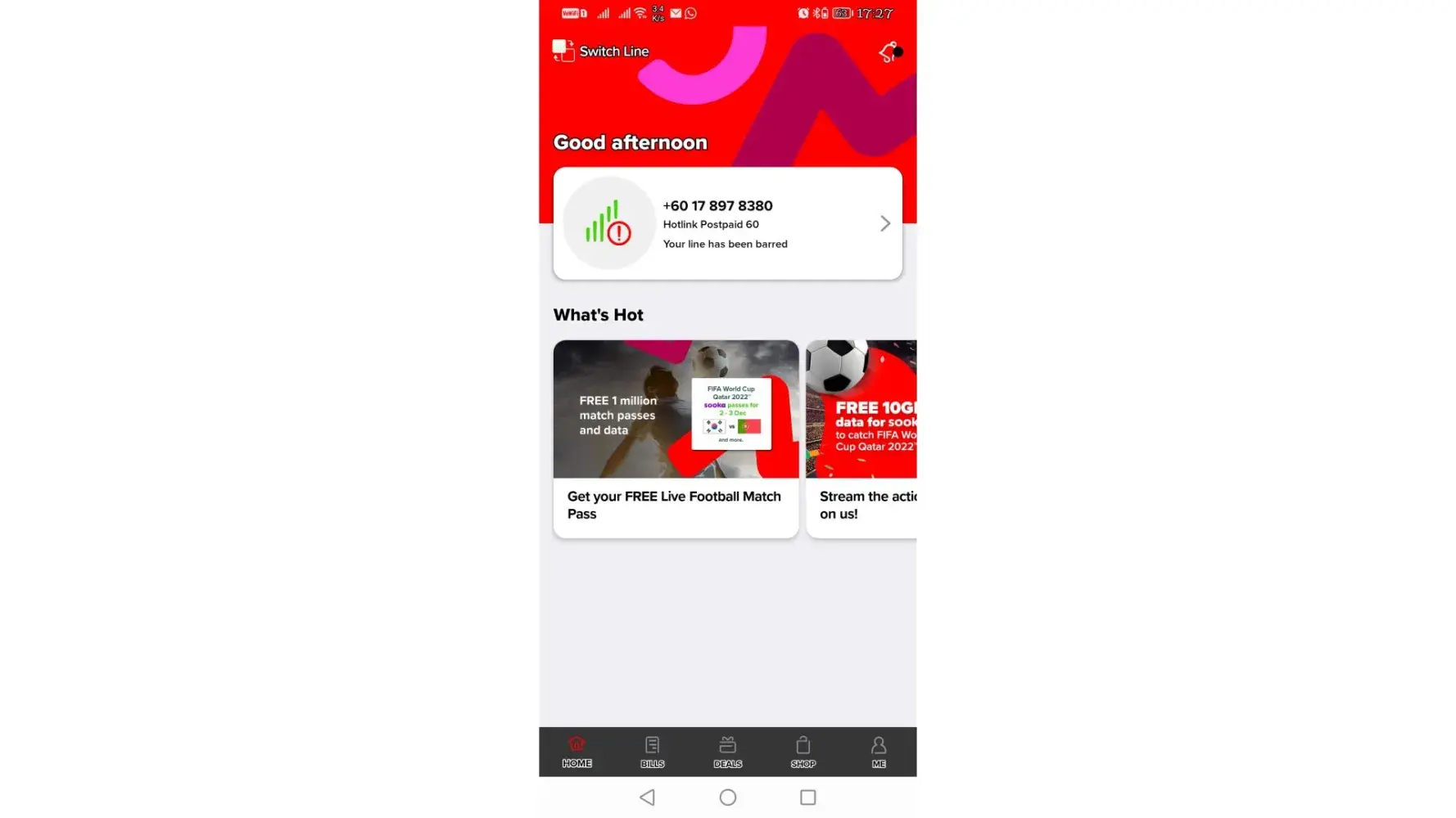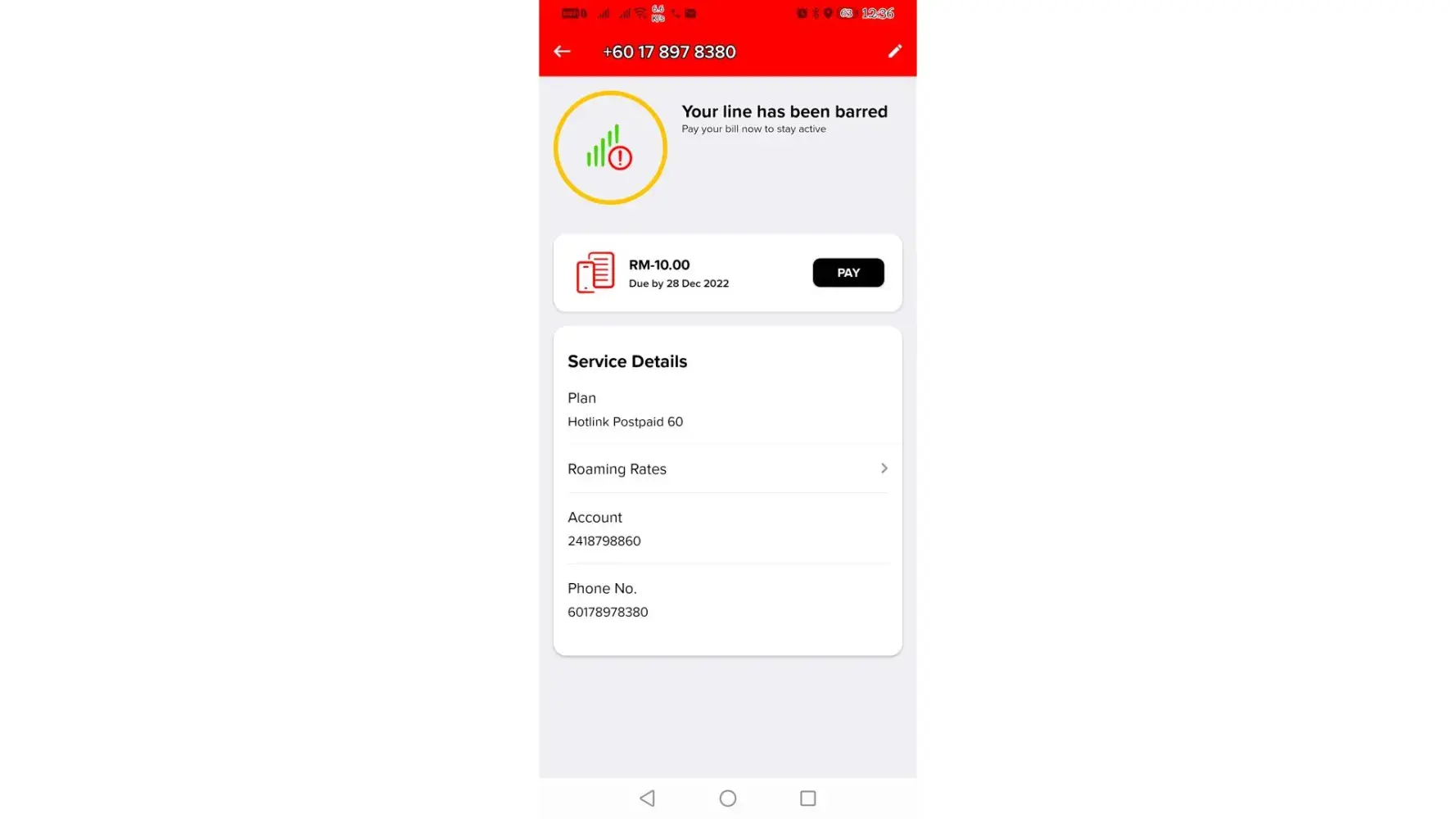 I'm on time to make payment on monthly basis and just aware as my phone being barred from Maxis.
