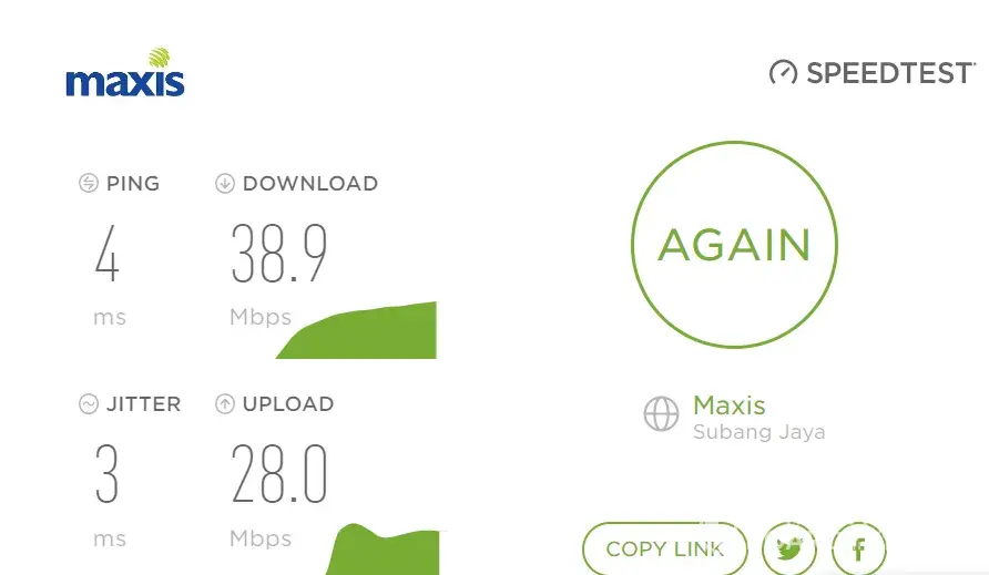 Desired outcome: to have at least 150Mbps after maxis speed test