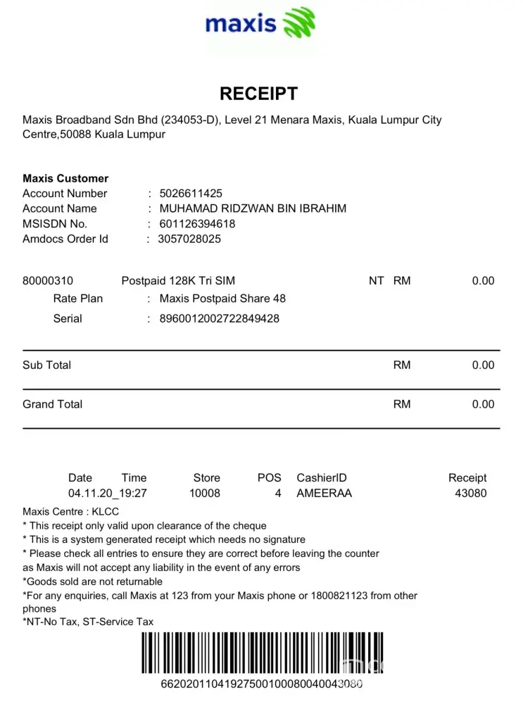 04/11/20, 18:57, Ticket No.4079 - I went to Maxis Centre Klcc to inquiry about device plan with them. One of the sales staff had advise about current promotion which is RM1 Year End Sales instead of Zerolution Plan(as per our interested). She briefed a procedure and what i need to take action. First of all, i need to add-on a supplementary line and upgrade to Plan128 and i need to pay upfront payment which is RM594. After do all the cross checking and everything, I agreed with the all idea and advise given. I had settled add-on the supplementary line on that day, she told me that, after the process effective, so i need to come back to Maxis Centre and do upgrading on the principal line to the Plan128. Then, everything will be entitled. She also had been reserved the device Vivo V20 Pro as per my intention. The Sales Staff Code: AMEERAA