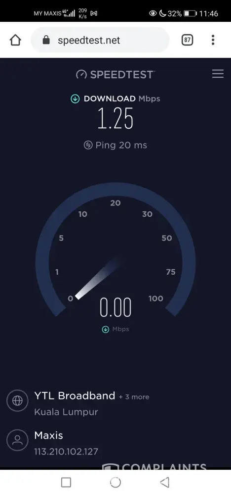 Hi my name is Chan. I have suffer from bad Internet connection at my house for the past 2 weeks and the problem is getting more serious till the connection was really bad. For your information I stay in Kuchai lama which about 10km from KL City center. I have call maxis customer service and provided them the information, they try to assist me to do the setting and restart the phone. Is still the same issue and the customer service say they don't have any network issue around my area and they will help me to launch a report. I am not sure how long does it take as the bad service is interrupting me as I was currently work from home.