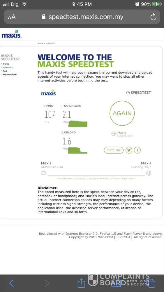 I was a maxis loyal customer since 1998. I paid premium price for maxis service but I don't feel that maxis provided the equal amount of premium service to their customers. The Internet connection is too bad, even the telco like Digi and Yoodoo have a better Internet connection. I have proven this by doing a speed test in my area. Remember Maxis is charging premium price!