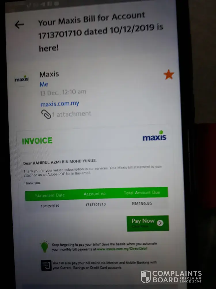 if i dont use Maxis app i will never know about i have overdue bill with big amount. why the dealer can register the e-billing under his own email. so i think he must responsible for my bill. i already settled the bill if not my name will be under the blacklist.