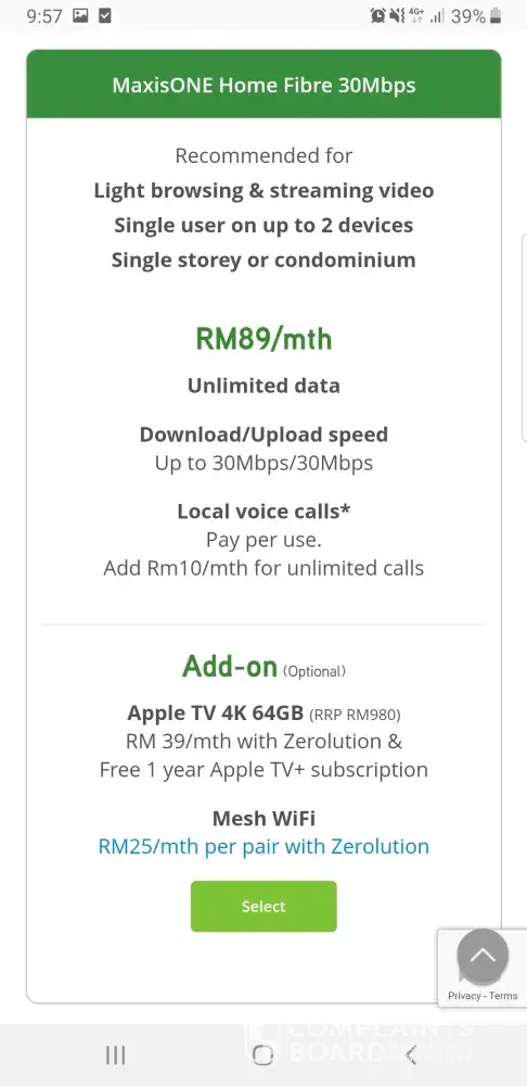 Plan: Home 500Mbps Voice Unlimited (RM219)