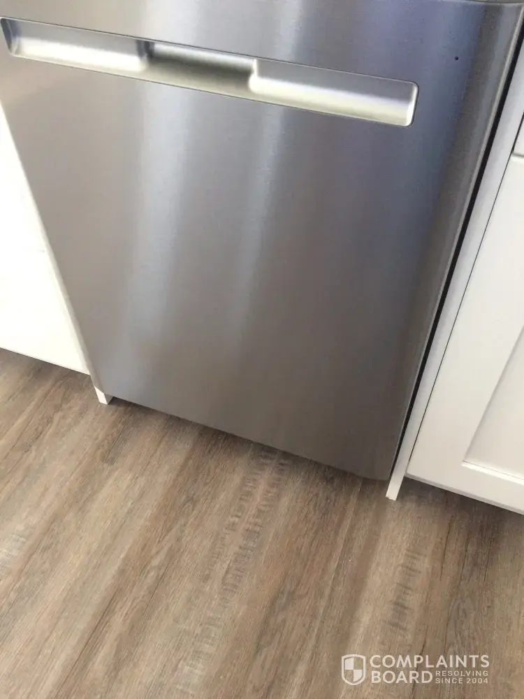 Bought at home depot red deer alberta canada on march 24/17. The door leaked water all over my kitchen floor. I called extended service number, and they sent out a repair guy on sept 12/17 with parts already, even before he had done any troubleshooting? Parts were new sliding rails. New rails were 1/16" shorter than original which means maytag knew it was a design fault causing door to not close properly. I have photos of wood that has swelled and busted on my brand new kitchen. It is the piece to the right of the dishwasher in photo. As you guys obviously knew about the issue with this model and didn't do any changes to fix the problem before it was sold to me, then I would like you to pay for the kitchen installers to replace the one piece of damaged wood. I have photos attached. I can get an estimate for you for the repair if required. I trust you will take care of this issue asap. Thank you. Steven cubby