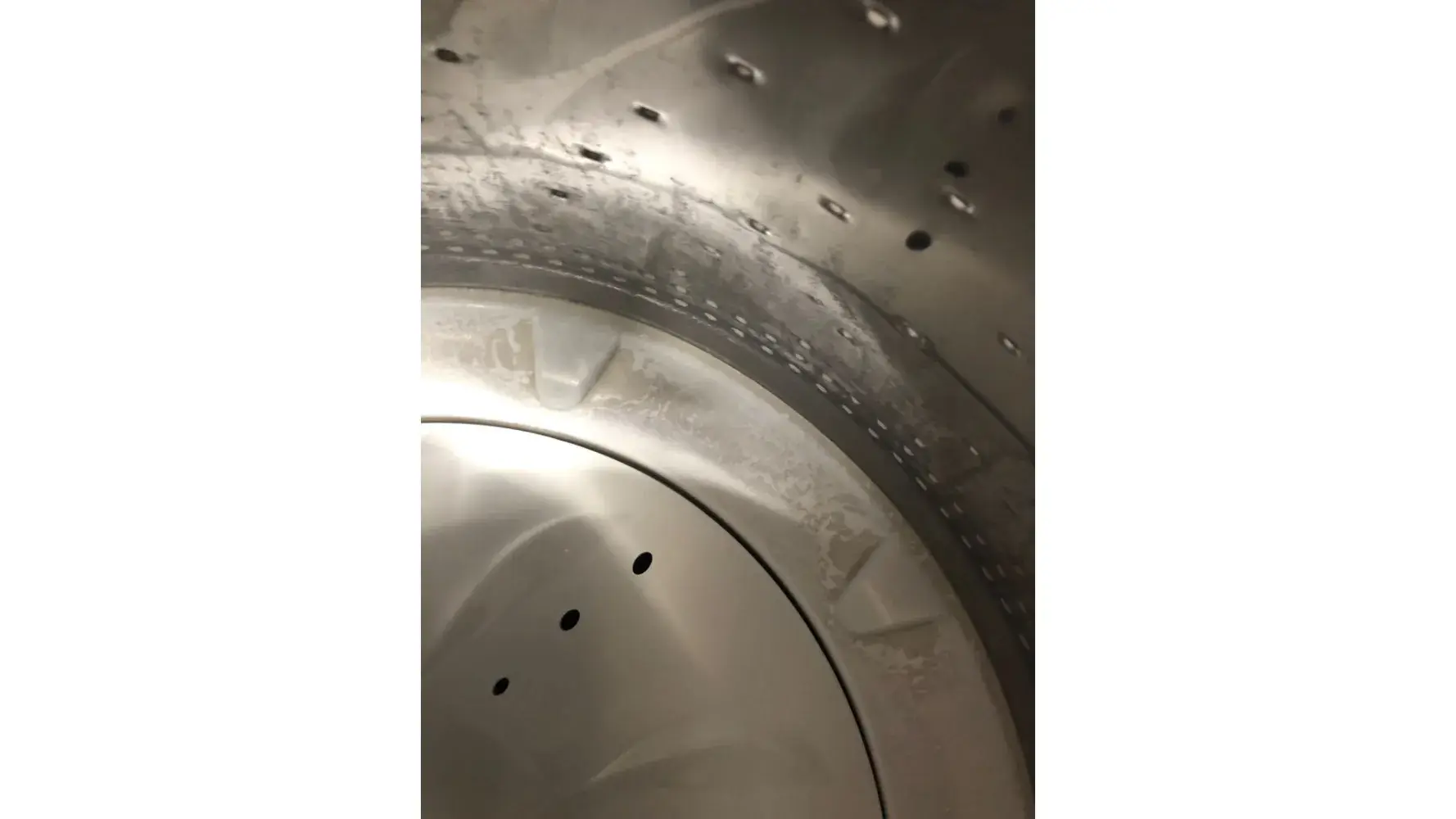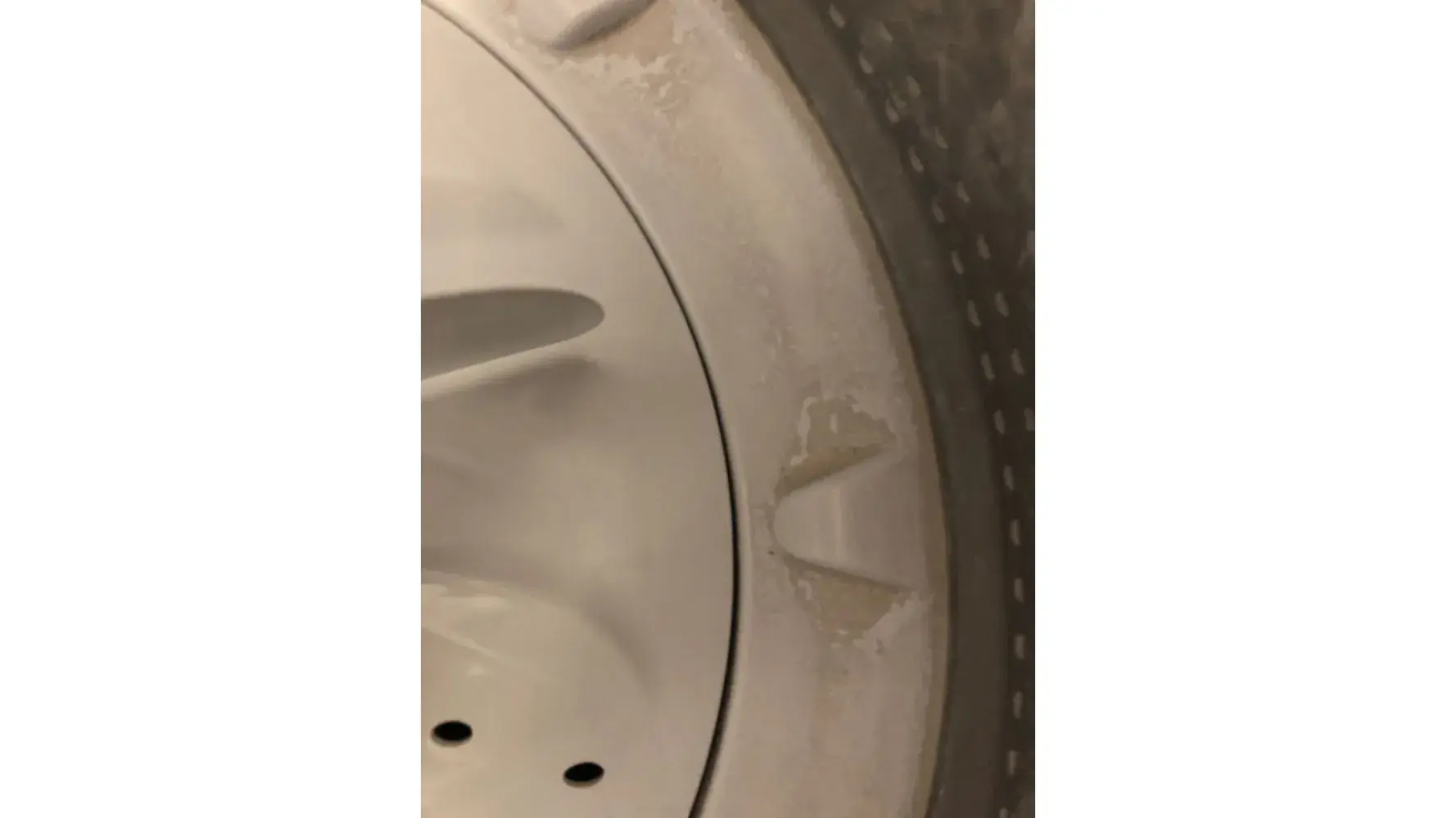 We purchased this from Costo in April 2021. After a year of use, we noticed that inside appeared to be dirty. We cleaned it with water and laundry soap. It has continued to degrade the inside tub is discolored, looks dirty, and is breaking down. We are empty nesters & the machine is used 4-5 times a week. There is no way the inside should be breaking down.