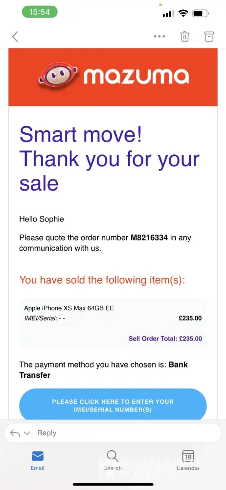 On 6th October I sold my iPhone XS Max in perfect condition I have always looked after my phone and was quoted £235.00 (order number M8216334) Back in 2020 I damaged the phone screen I took it to Planet mobile in Merry Hill and they replaced the scree costing me over £200 as they stated that the screen was genuine iPhone screen. I posted my Phone to Mazuma in its original box using DPD drop off service, I brought a Secure box and was sure to package well to avoid damage in transit. As I say after always looking after my phone I was under the impression that the £235.00 would be honoured and having used the phone with no issues I never saw an issue occurring.