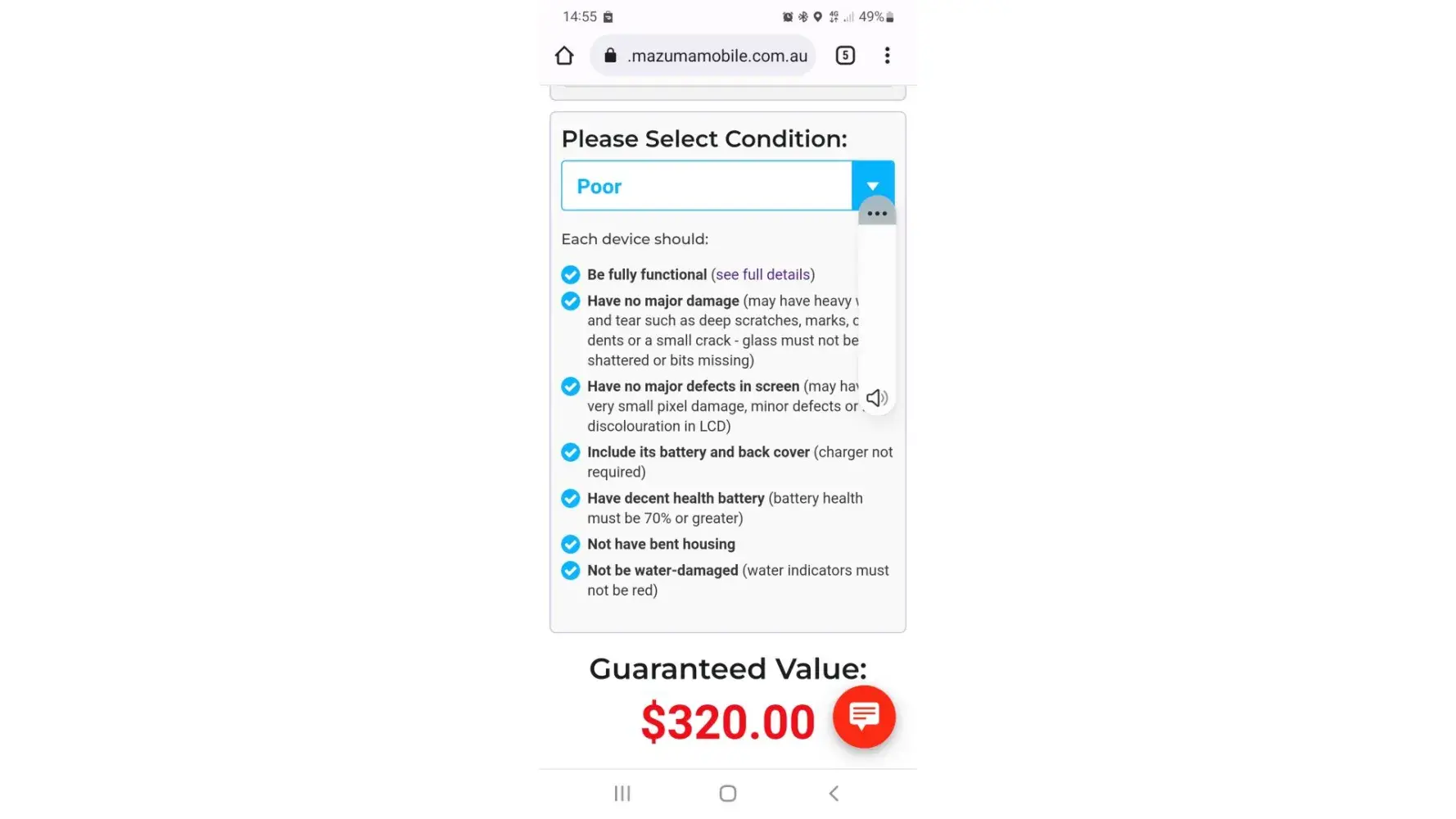 I received an email today saying it was now only worth $95 due to the review and apparently the device does not meet the "poor" status which is what I gave it.