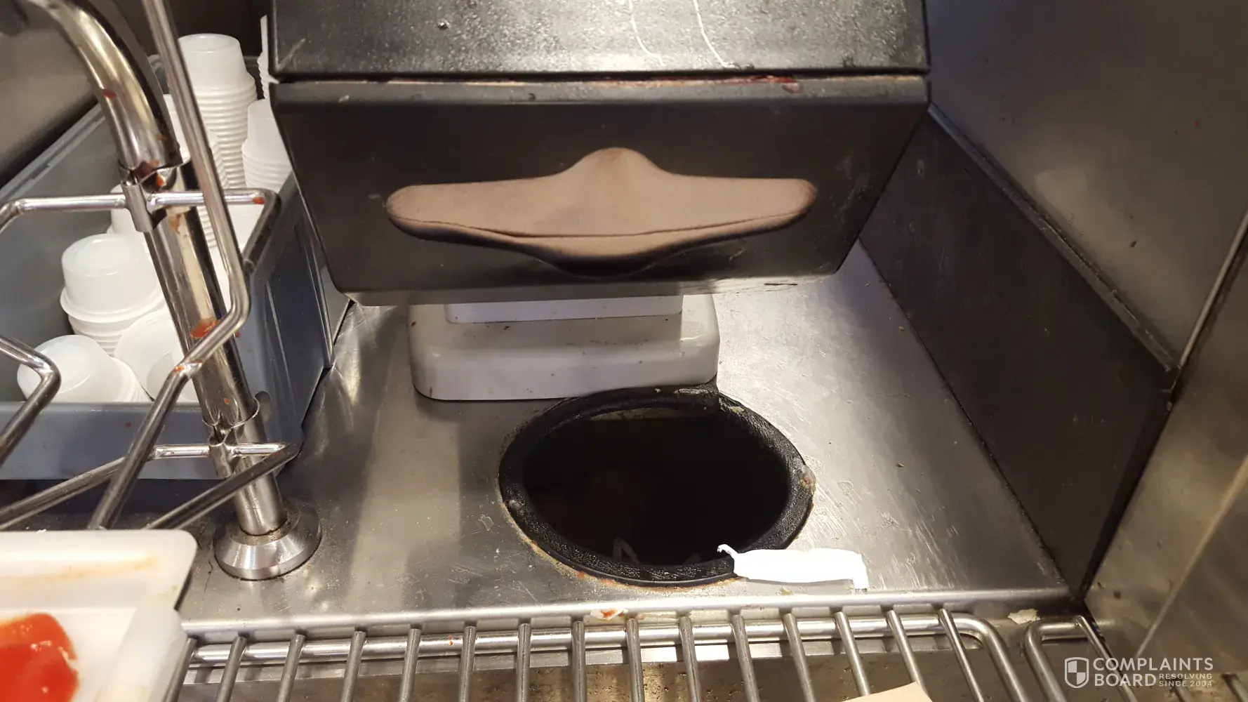 I went inside instead of drive thru. Was given an empty cup to fill at the fountain drink station. This was absolutely disgusting. Old food, dirt, caked on disgust all over the place. Extremely unsanitary.