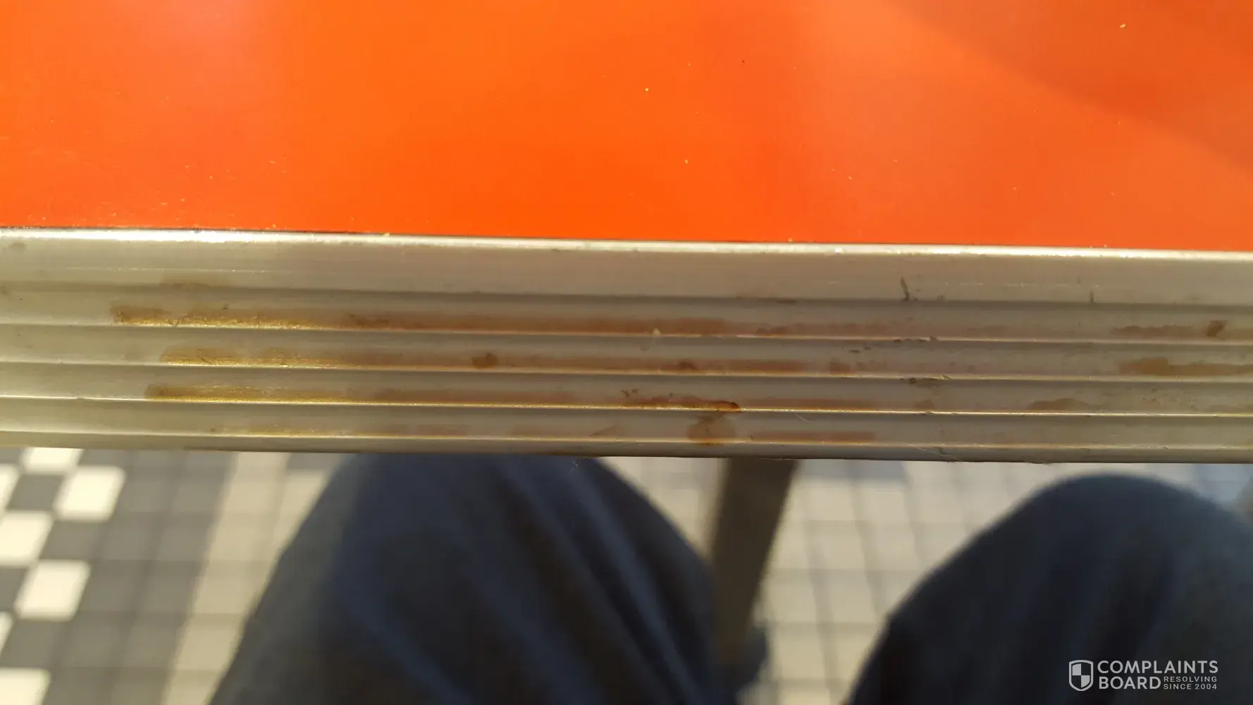 I sat down to eat my mediocre food and then noticed thetables were exactly the same. Old food caked on, dirt and other gross bacteria just lingering.
