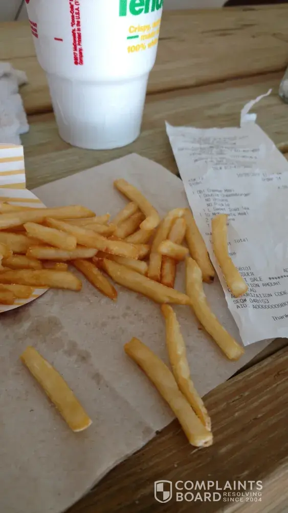 If this happens in the future, you should consider taking the fries along with your receipt back to the location for a refund or replacement.
