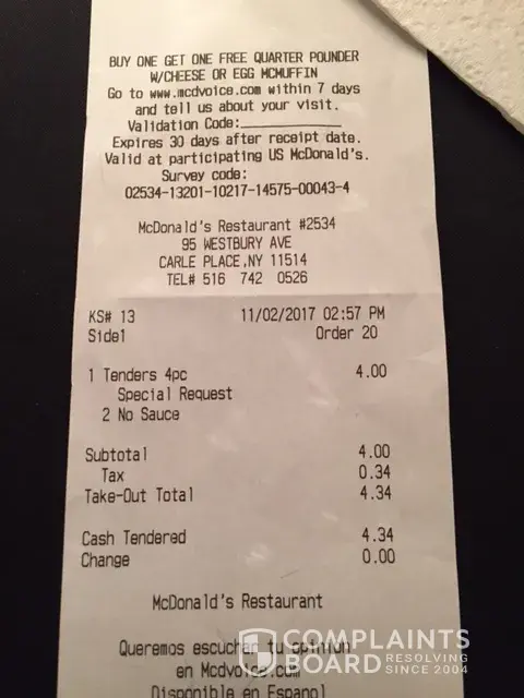 be tolerated and will go public if I do not hear from McDonalds that these