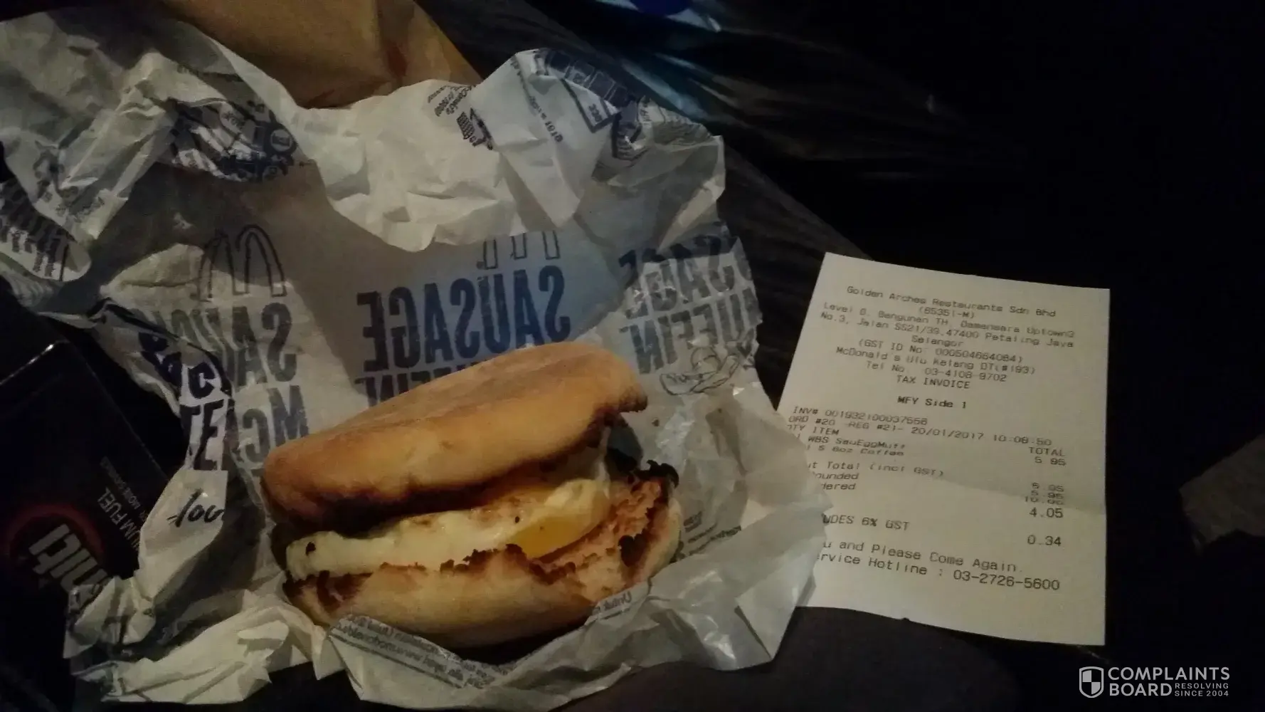 I'd bought a Sausage Egg Muffin on 20/1/2017 at Ulu Kelang McDonald. Invoice [protected] at 10:08am. The Muffin is found scorched after I opened it at office! What a disappointed and ridiculous breakfast that I ever had in my life! I'll posted the pictures on my Facebook to tell all my friends not going to McDonald again! I've to post this to public because this charred Muffin will lead to Cancer after eaten! I've support McDonald for more than 20 years, and this is the serious Muffin I ever had in my life!