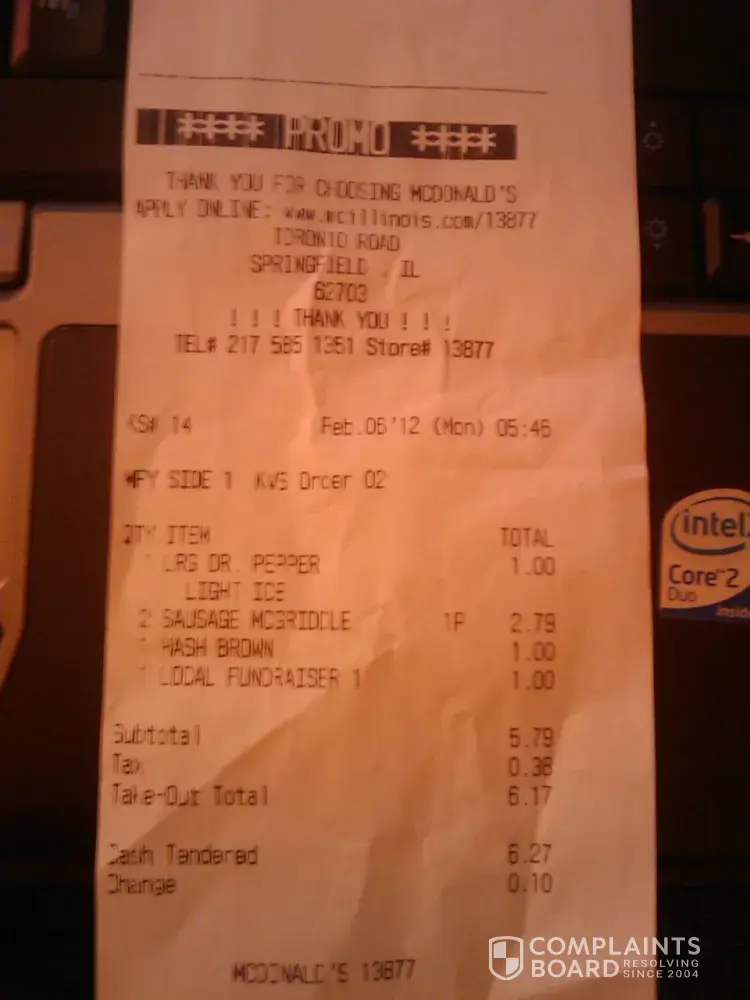 i had a "promo" coupon for one "free" mcgriddle with the purchase of another mcgriddle. turns out it wasnt free at all. the cashier charged me separately for the mcgriddle, the drink, and the hash brown so my total came to be $4.79 instead of $3.99 for a meal. i basically paid an extra $.80 for a free mcgriddle. i am writing a letter to corporate. calling corporate and posting this information where ever i can find. mcgriddles are my favorite mcdonalds menu item. and the ONLY item i get outside of fries, but because of this "promo" i am no longer eating there again. also, i paid an extra $1 for your fundraiser, but now i am questioning the validity of that.