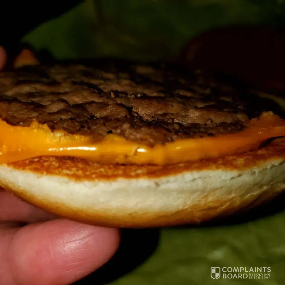 Store location Pilot Knob Missouri ordered on July 10th 2023 around 1:30 pm cst. I ordered a cheeseburger and a couple other items, but the cheeseburger was awful. The burger itself was so small and thin I couldn't even see with the top bun on. Also almost everytime I go there I am asked to pull off to the sideso they can bring my order to me when there is no one else in the line.