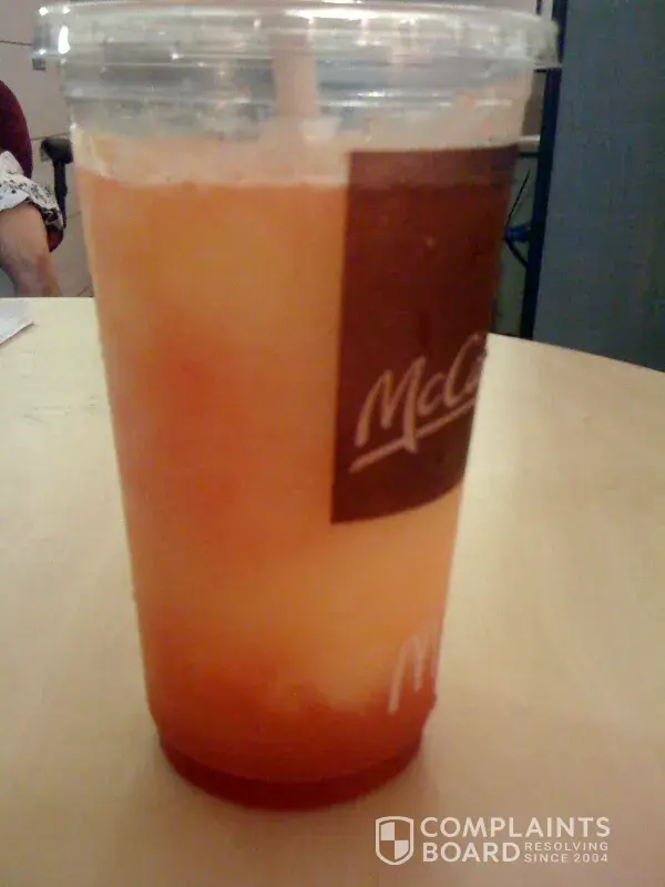 My wife and I went to mcdonalds this morning to purchase a strawberry and banana smoothie. The clerk behind the counter handed us a yellowish drink with a red tint to it. After some debate she ensured that it was in fact the proper item. Upon arriving at work i tasted the product only to be unpleasantly greeted by the awful tart taste of lemonade with some strawberry floating at the bottom. I've gotten a Strawberry Banana Smoothie many times before and I am fully aware of the way they look and taste. I present a picture of a REAL Strawberry Banana Smoothie in figure. See if you can tell the difference. To think these clerks don't even know their own product. What does that say about management.