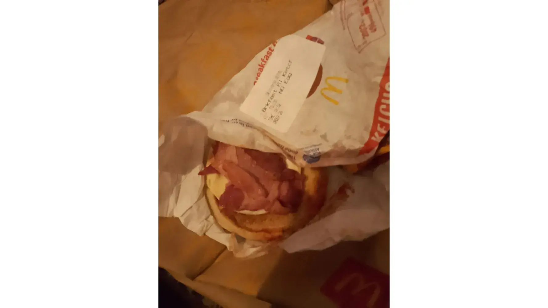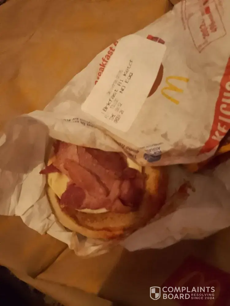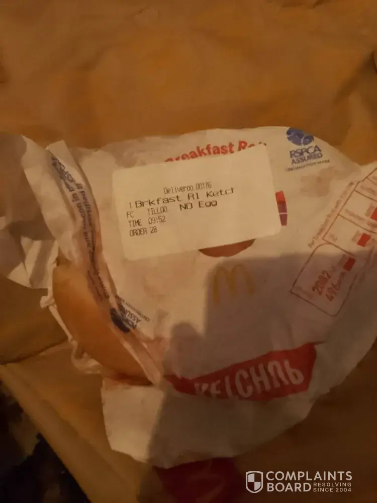 I placed an order for delivery through Deliveroo quite clearly putting my order as NO EGG on both Double sausage and egg McMuffin, and breakfast roll with ketchup, I was absolutely mortified to find that my son who is allergic to eggs and is anaphylactic to eggs had been sent a breakfast roll with egg in, also the double sausage and egg McMuffin which I also ordered NO EGG had egg in it, the other breakfast roll with brown sauce was stone cold.