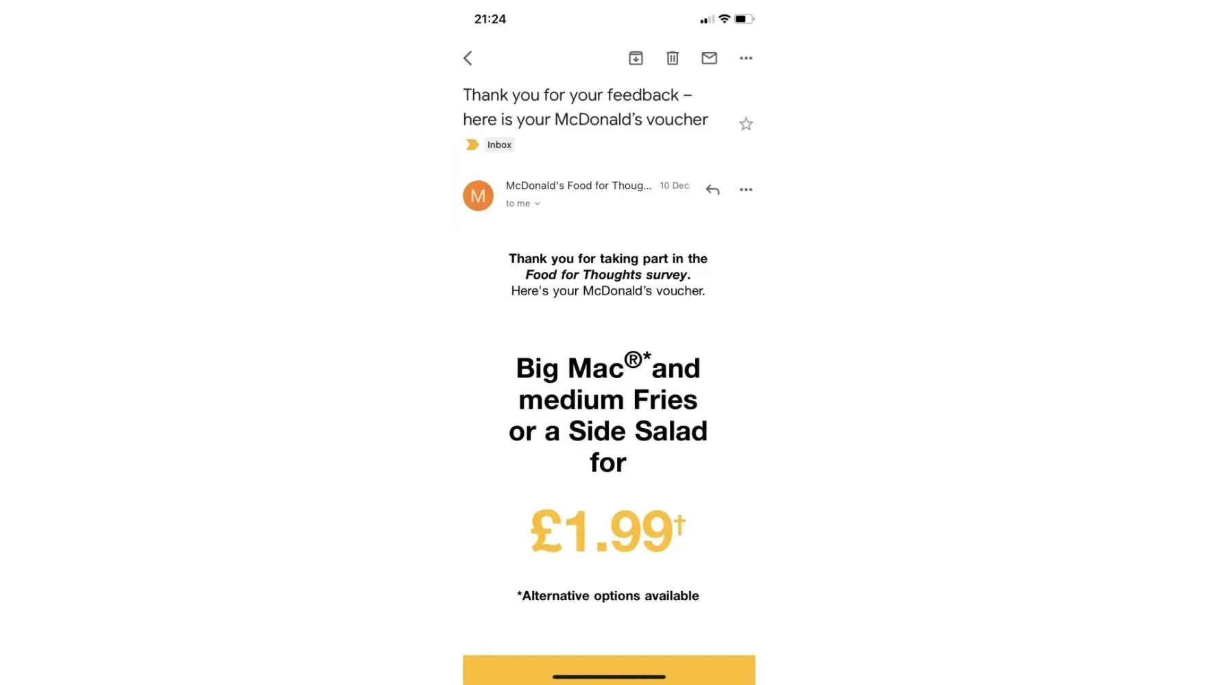 Questioned the price and didn’t win, when I got home there were no qpc sandwiches, only 2 mc doubles and quarter pounder.
