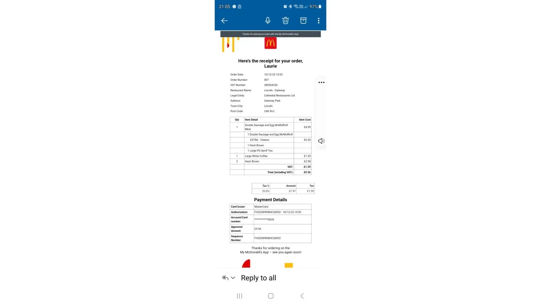 Dear Team. My partner and I are very upset. We visited Lincoln Gateway Park and usually we park on the main road to avoid a parking ticket but this day my disabilities were so bad I could hardly walk and the pavements and road was icy, and I have a high risk of falls so we parked in the disabled bay, we arrived at 10:53 and my partner made a purchase on her account [protected]@hotmail.com, we were about to leave at 12:15 when one of your staff members mentioned us doing a Food for Thought reference number H11WVW8NJVHU, we explained we would go over our parking limit of 90 minutes if we did this and he said go to the counter and give them your registration plate and they will sort this for you, they wiull get the manager to sort so you do not get a tikcet, which is what we did, we then ate the flurry that we were given for doing the food for thought and left at 12:44, which made us 20 minutes over our time. We have just received a parking ticket! not very happy as you can imagine. We visit all your establishments in Nottingham, Newark and Lincoln at least 4 times a week and must of spent hundreds of pounds.