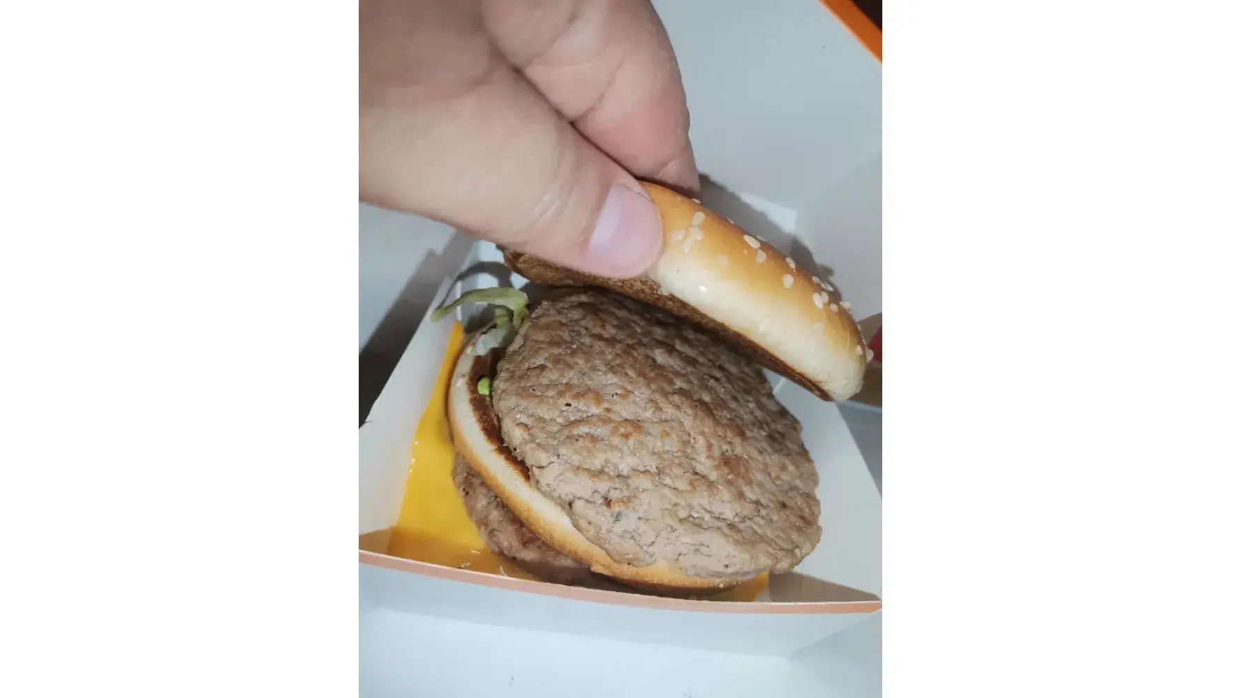 I ordered a Big Mac and when I picked it up, I saw that the middle piece of bun was actually a bottom piece from another burger.