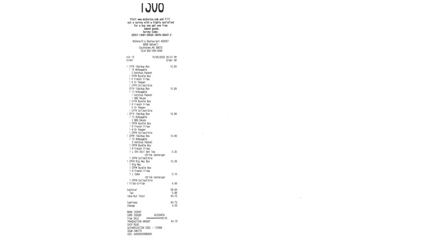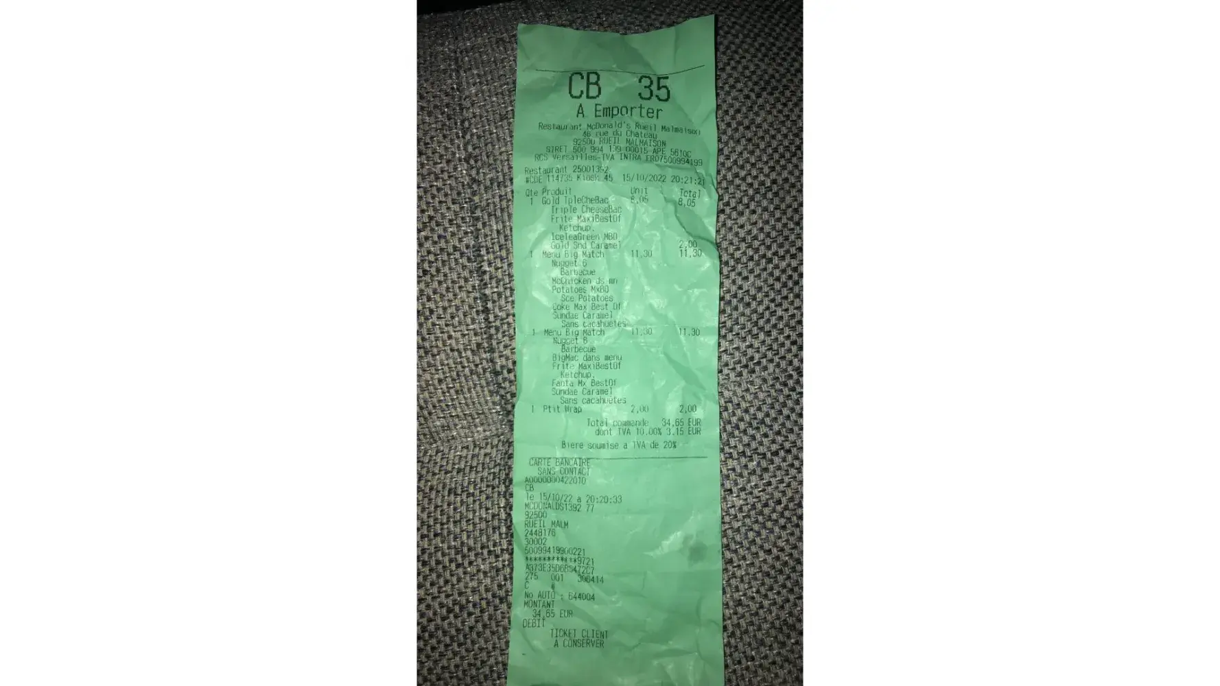 I ordered from my local McDonalds in Rueil-Malmaison on the 15th of October 2022, at approximately 20 minutes past 8pm local time.