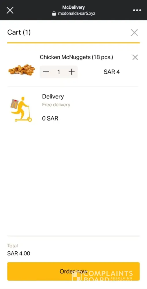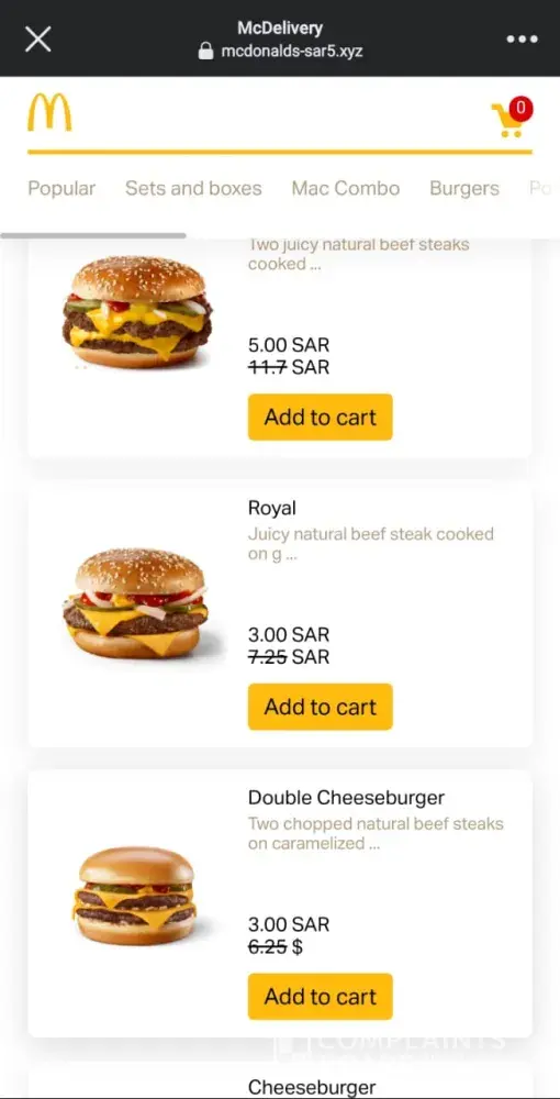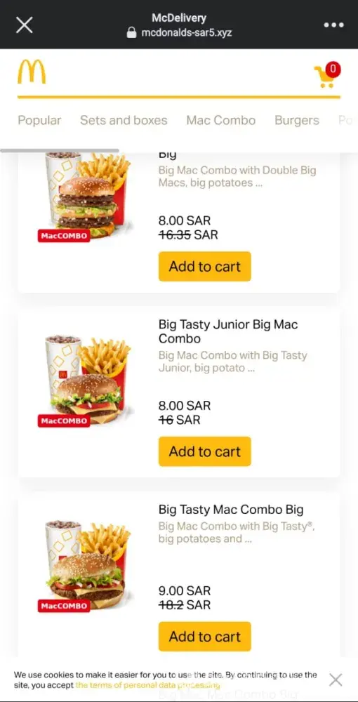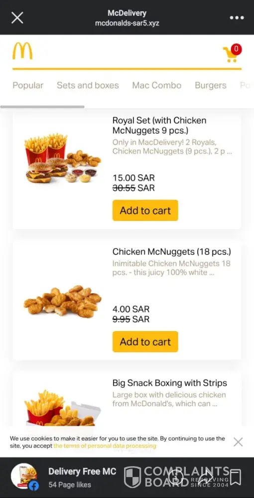 I just want to inform you about our bad experience .. we found a promo on Facebook and Instagram .., promotion from MC Donald .. with a very cheap price MC Donald burger, nuggets MC Donald product were so happy .. so we click the promotional site and turn out to be like MC Donald site we ordered food and we purchased around 30 Saudi riyals only were so happy because its cheap then we check out and then ask for credit card number and details we trusted the site because its MC Donald we pay using our credit card and then asked for OTP ..., and we entered it and from our surprise the bank send us message and from our surprise we pay thousand riyals from it .. and the company that collect the money is from Russia Moscow ... we complain right away and stopped the card .. but after a month of following up from our bank nothing happen we lost 1600 Saudi riyals from this scam... .. im writing this to inform your company somebody is using Mc Donald to deceive people so they can collect money from small people like us.. so this things will be stop .. so no one will be victimized by this scam... MY name is maria duran .. im working here in saudi arabia... life is so hard .. i hope by telling u this it will put end on this scam on social media and no more people will be victim by this. i add some photos so u will have idea .. thank you sir / mam and God BLess