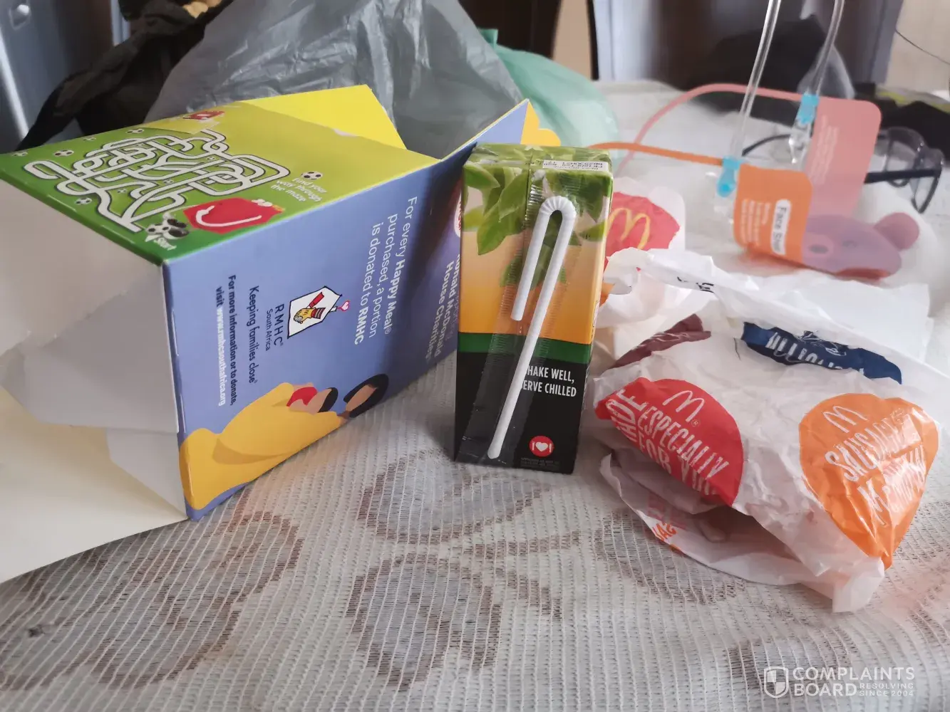 Bought mcdonald big mag n two happy meals which didnt have toys inside, im so disappointed cause my kids were interested in the toys. I believe I wasted my money to buy that so fix your staff before you loose customer. Now my kids wants the toys and to go back it will cost me more money for transport were by it was supposed to happen like that😡. Incident happend today and my email address is im expecting feedback [protected]@gmail.com