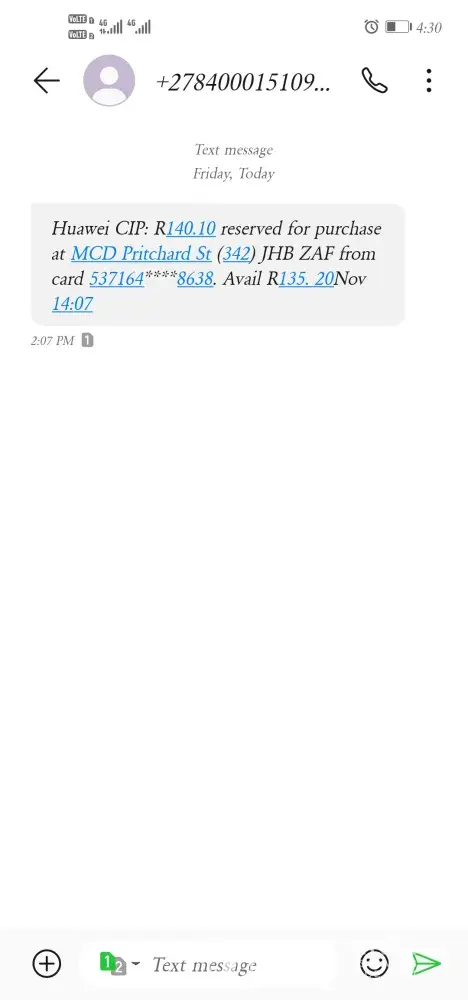 I placed and paid for and online order but didn't receive my order. Phoned and went into McDonald's on the bluff to retrieve my order, was told the order did not reflect on their side. Showed manager on duty my payment message was told they still could not give me my order. DISGUSTED that I was robbed of R443. 20 and Mcdonald refuses to reimburse me