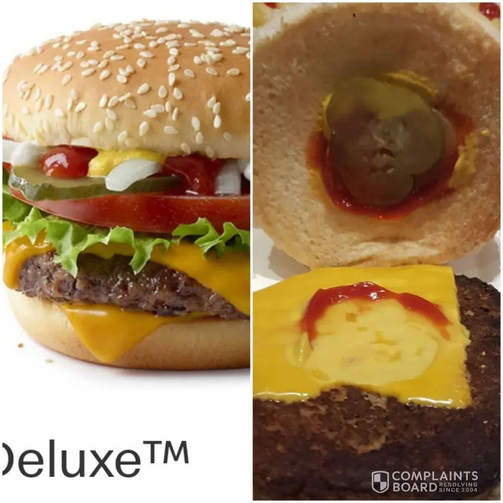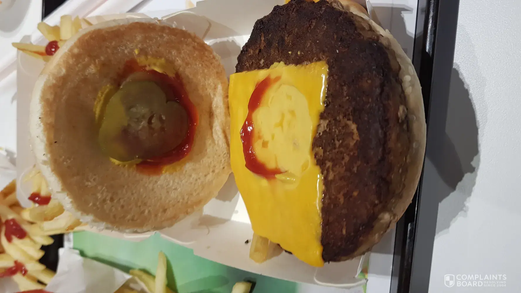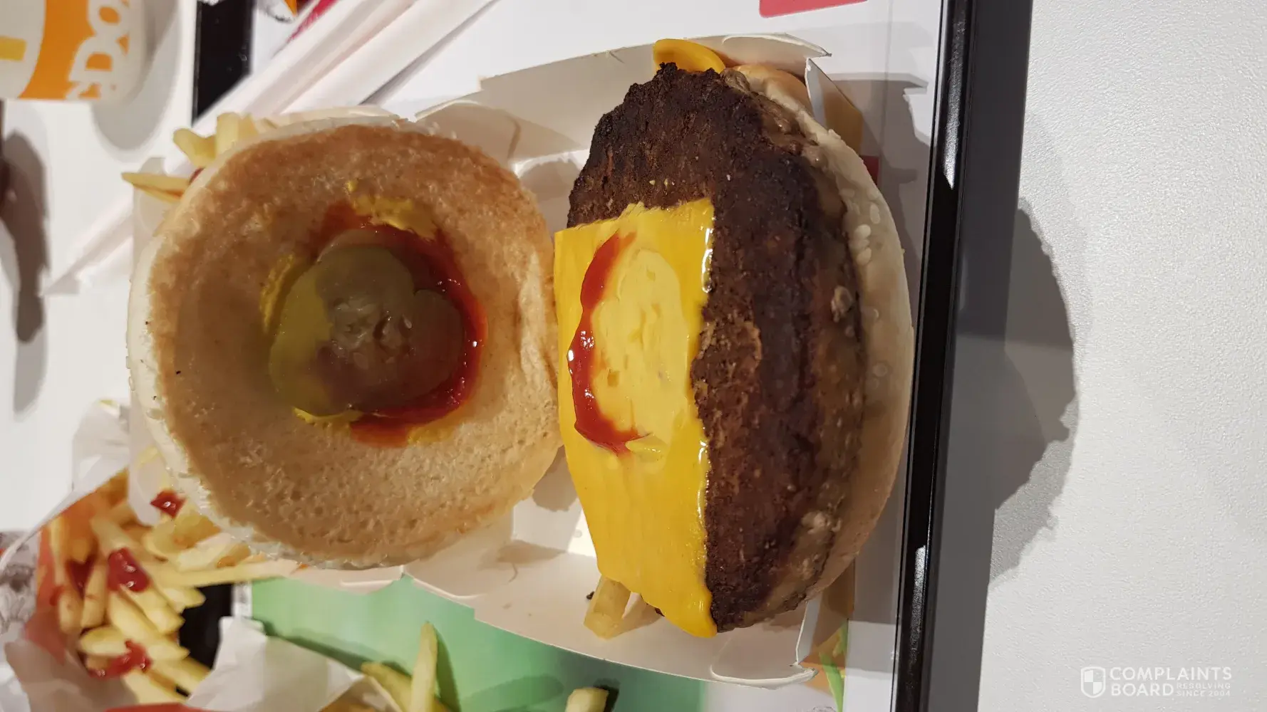 A royal delux, without vegetable and over cooked. Not a single lettuce. Not a single slice of onion. Have you ever seen ketchup inside the sandwich? The image speaks for itself. Complaint made, not a single word from them. When you have one franchisee, he made whatever he wants and the image of MacDo is hit here. A minimum of 4 franchisees are required in order to get a good service.