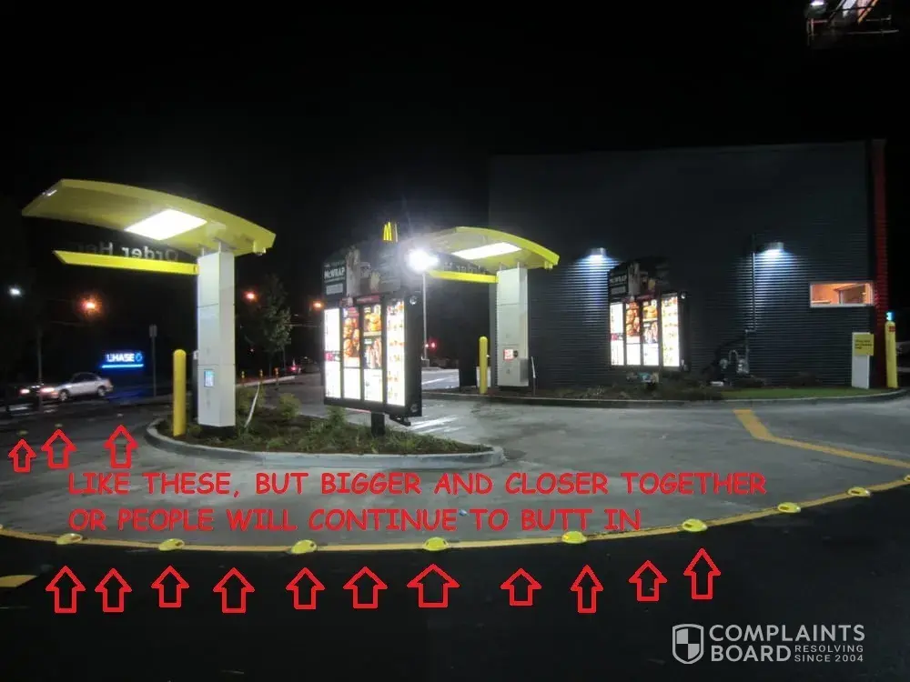 Its not your fault that customers don't know how to behave; however, there is a single yellow line leading up to two drive through lanes. To most people this means to form a single lane and wait for the next open drive up lane. More often than not people ignore that and go around several people to form their own lane on the outside drive through lane. They...