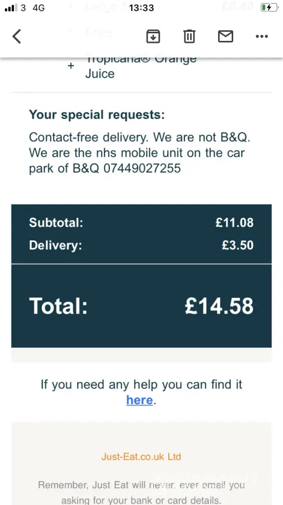 Read full complaintDelivery via just eat