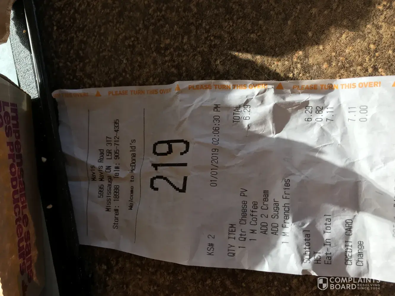 I visited this restaurant on 5995 Mavis Rd, , Mississauga, on, L5R 3T7 at 2:06 pm on Jan.1, 2019. I ordered a quarter pounder with cheese, a combo. My order was incorrect when I received it at which point I complained to the manager. He was of East Indian descent; he did not give me his full name. The manager was un-apologetic and spoke rudely to me and was insulting in front of other patrons. I understand that there are human errors, but customer civility is important. I am a regular patron at this location and enjoy eating McDonalds on a frequent basis; I have become disillusioned by my experience.