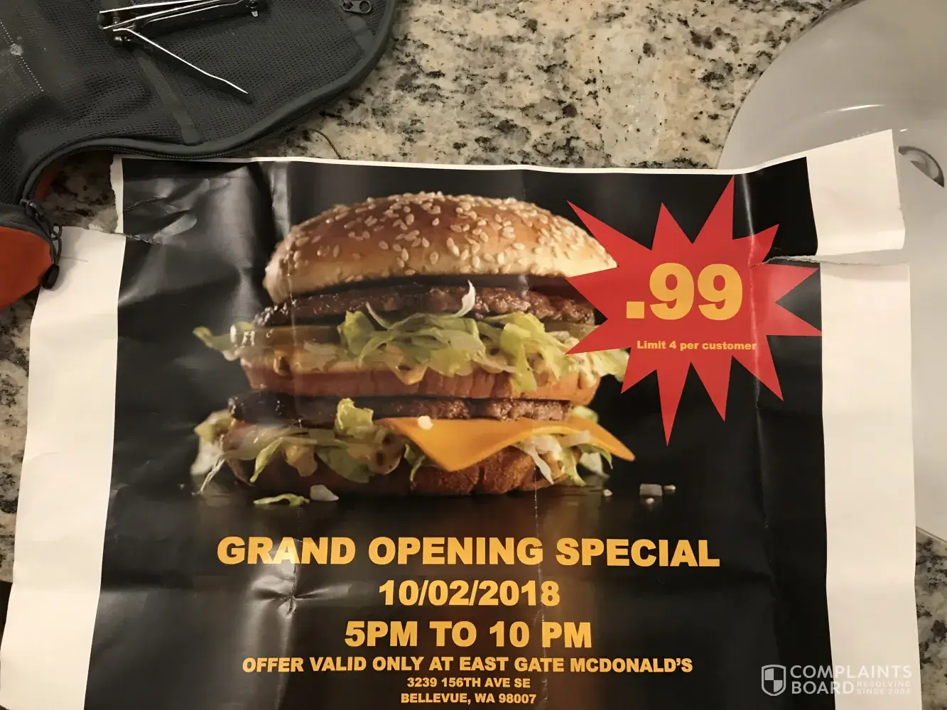 I was at a grand opening at 3239 156th Ave SE. Bellevue, Wa. They advertised up to 4 Big Macs for 99 cents each between the hours of 5-10 PM. I went in at 9:00 pm and they said they were out. Out? This was the grand opening. Then I asked if they would substitute and they flat out said no. On top of it the manager barely spoke English. She said she could sell me a cheeseburger for the same price. I guess she could since they are on the dollar menu. So frustrating.