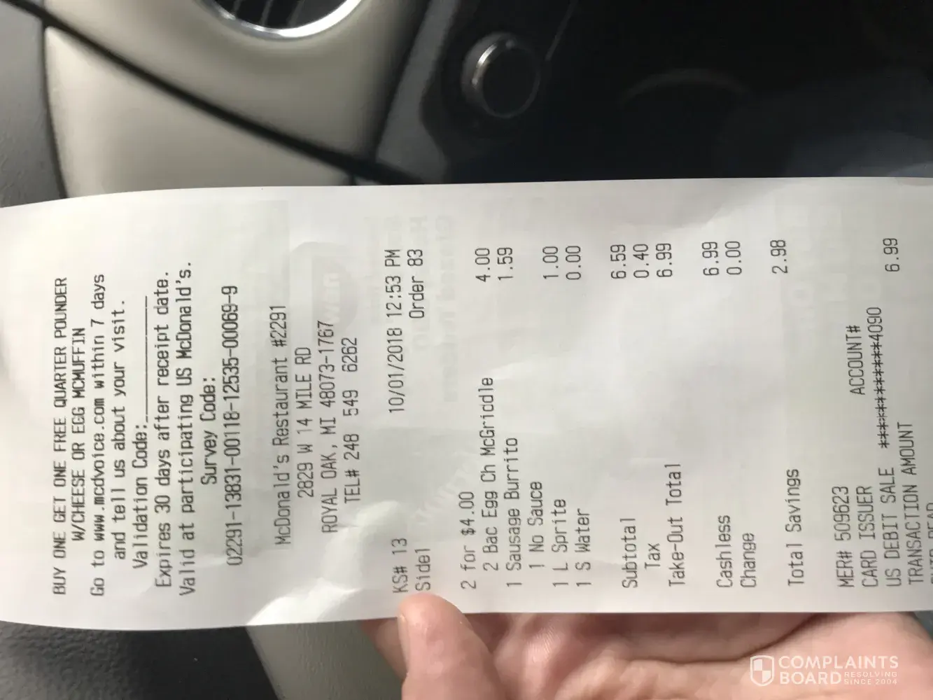 I called the manager at the Mac Donald Branch #11403 and the women manager said that she cant do anything about it and stuff like this happens all the time.