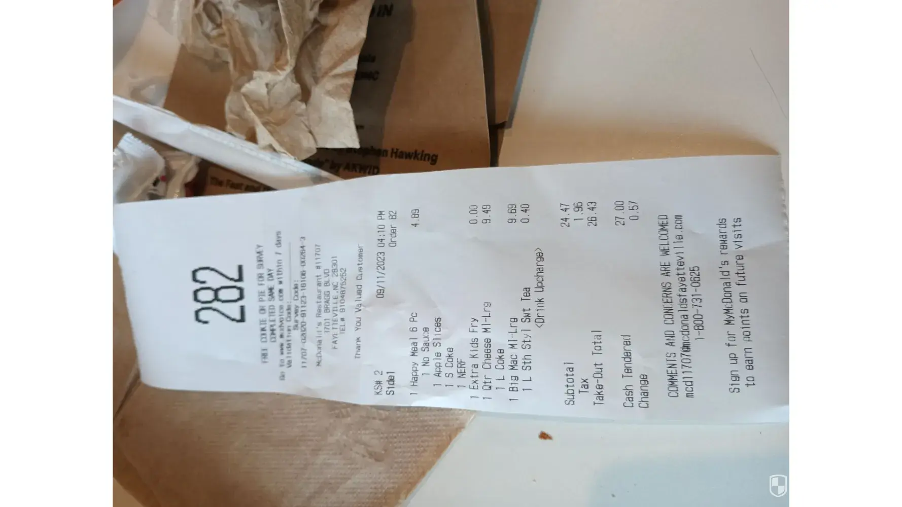 Store # 10247 McDonald's on 2681 Zelda Rd. in Montgomery, Alabama on 9-8-2023 @ 9:09 p.m.