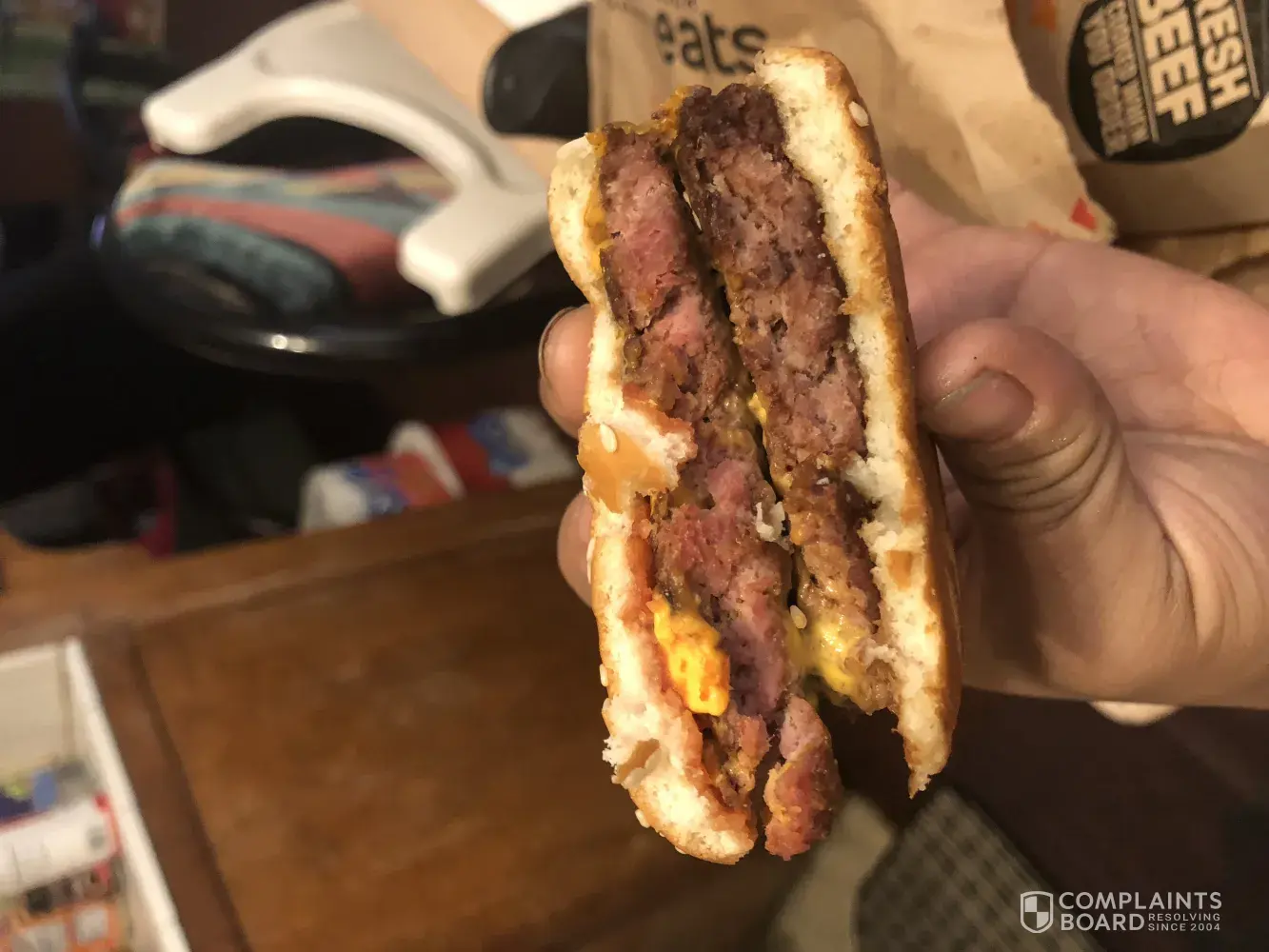 Last night after a long night of games we went to Parsons Kansas McDonald's to get supper. We don't get to eat out very often and I have never complained about our food before. But last night I ordered 2 cheeseburger large meals with ketchup only on the burgers and it came out with no meat on the burgers. It was a $23 meal and when I got home I had to make dinner anyways because there was only bread, cheese and ketchup. On meat.