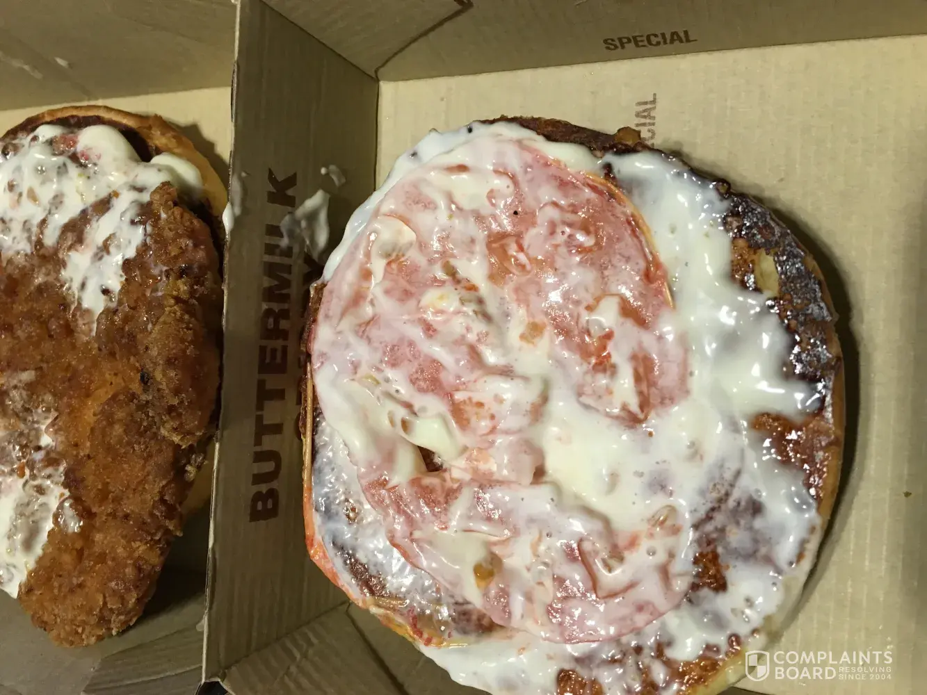 I went through the drive through and ordered a crispy buttermilk sandwich and go to work and there was an artisan sandwich instead. If i was able to leave work at this moment i would take it back, i am not eating this and would either like another sandwich or a full refund on this order. Please respond to this, i look forward to hearing from someone.