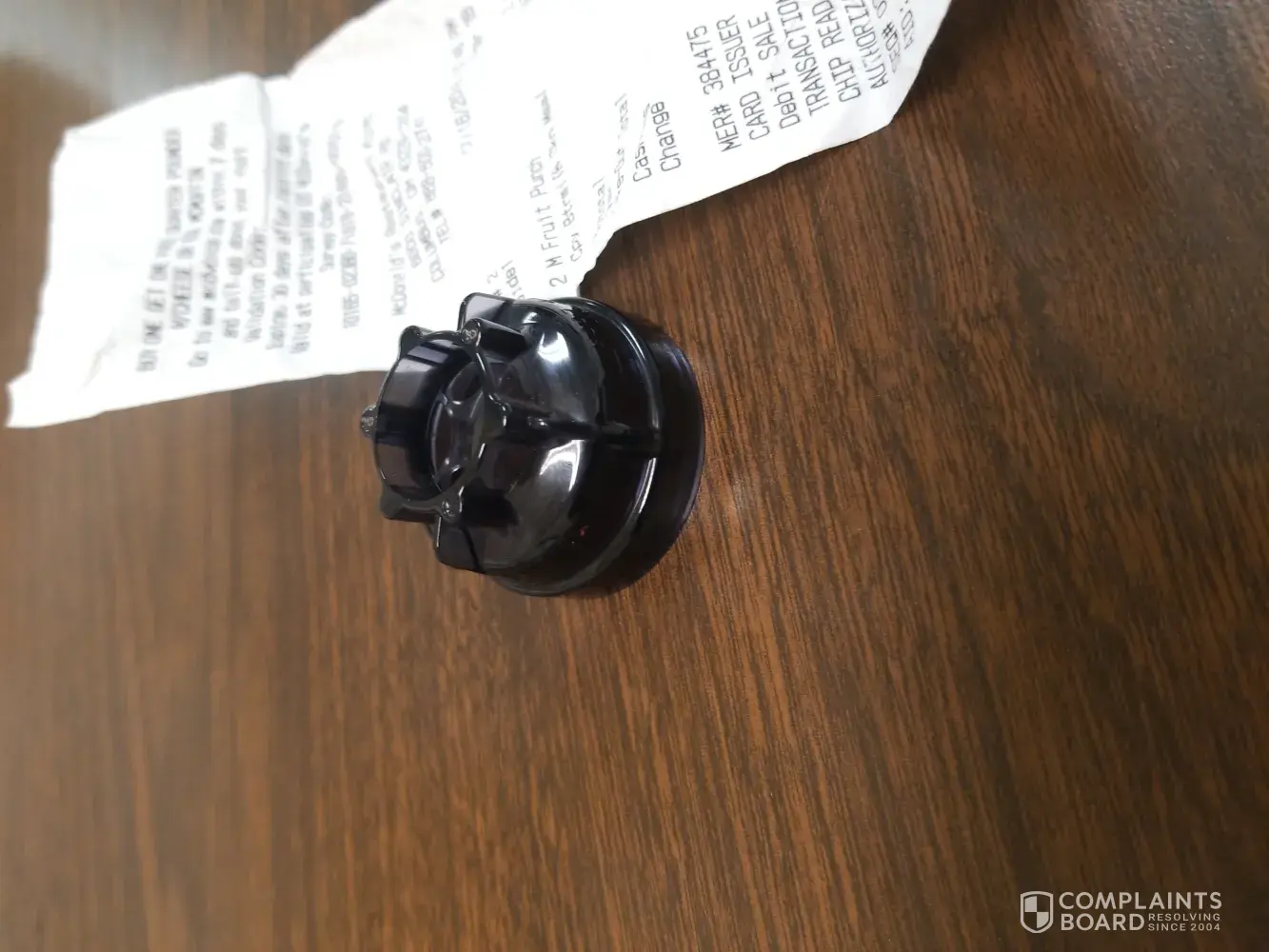 I purchased food and drink at the end of my meal I started drinking my soda pop and when I was finished I heard and felt something in the bottom of my cup. I started throwing up before I looked into the cup. Once I had a chance I noticed a black object which appeared to be the cap from the soda machine. I called I they said was sorry. I am sick to my stomach and this is not acceptable. Never asked if I was okay and the fact that my food didnt stay down I am upset. I normally eat at 5 am and this is when I noticed it. I dont get ice in my soda pop but I never paid attention to the bottom off the cup til the end.