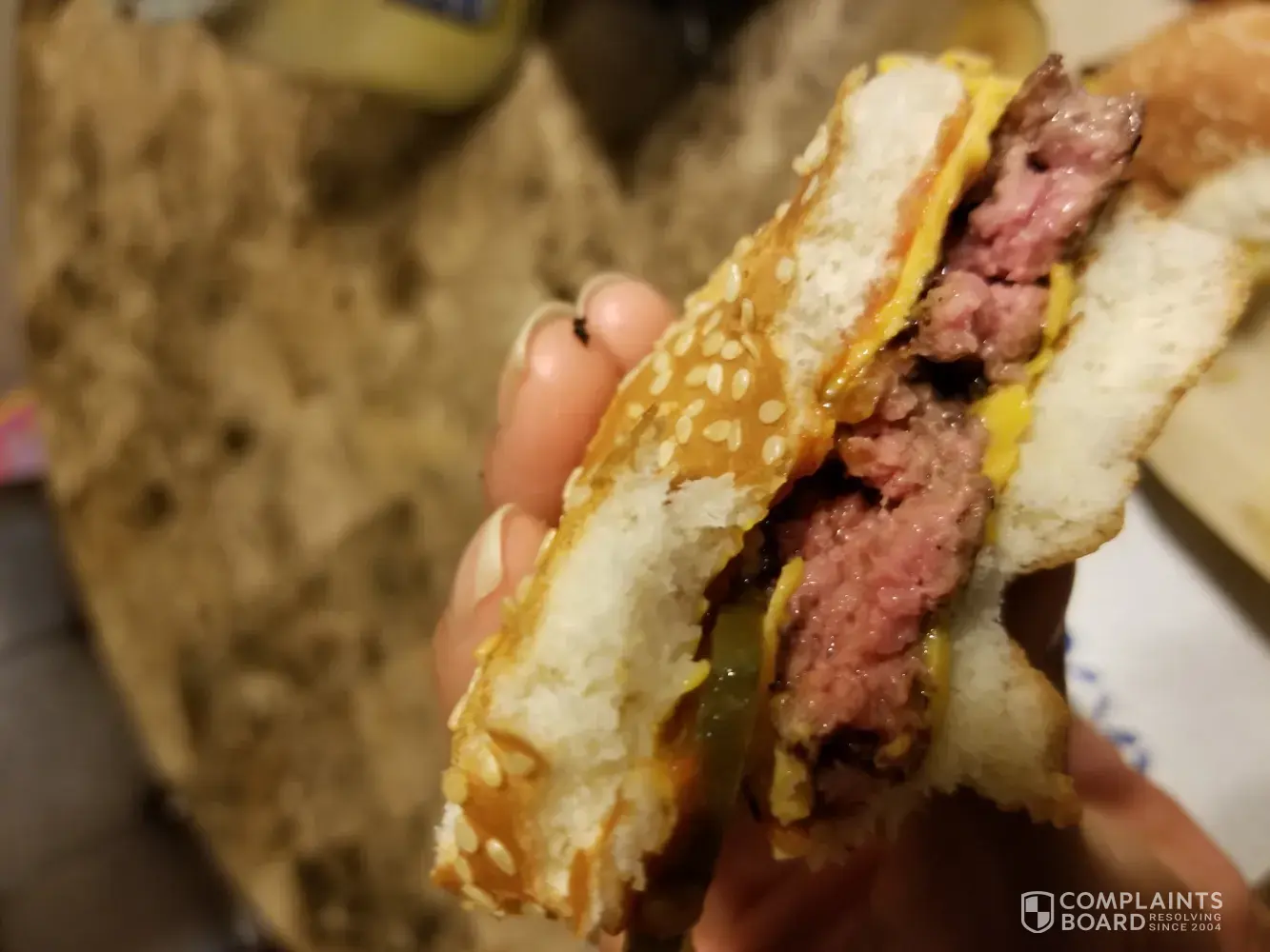 I went to the drive-through at the McDonald's located on 70 West center road Manchester CT. When I got my food home my quarter pounder with cheese was red in the middle. I proceeded to call the McDonald's location to speak with the manager just for him to tell me that that was an acceptable Burger because the new grills that they have does not fully cook the burgers there for all of the burgers are pink in the middle. I then proceeded to tell him that I never received a McDonald's burger that wasn't fully cooked and that this Burger is totally unacceptable. He did not proceed to apologize and/or offer me another burger or my money back at all.