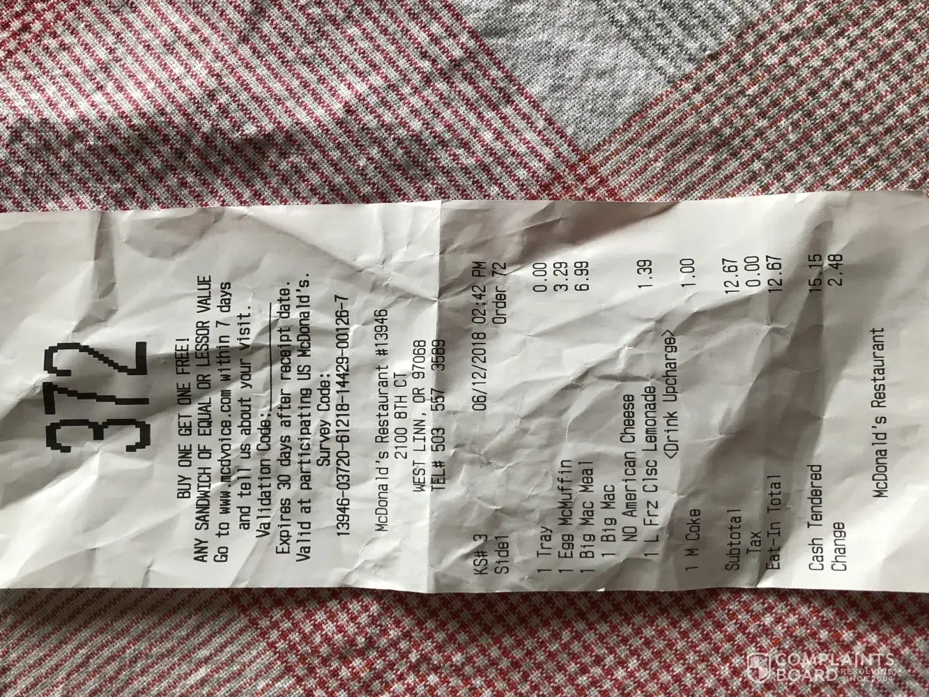 My husband and I frequent the West Linn, Oregon McDonalds when we're returning from Portland, so after traveling almost 2, 000 miles, up since 3 a.m., and not having a decent meal, we stopped in. I take part fault. When I placed my order I asked for a lemonade. I was promptly told they didn't have any. Instead of asking me if I meant frozen or blended she said curtly no. When I went and chose a medium drink, she then asked me if I wanted a blended lemonade. I said yes. She then curtly announced that they would only be available for one more week. (This shocked me since it's only June 12.)