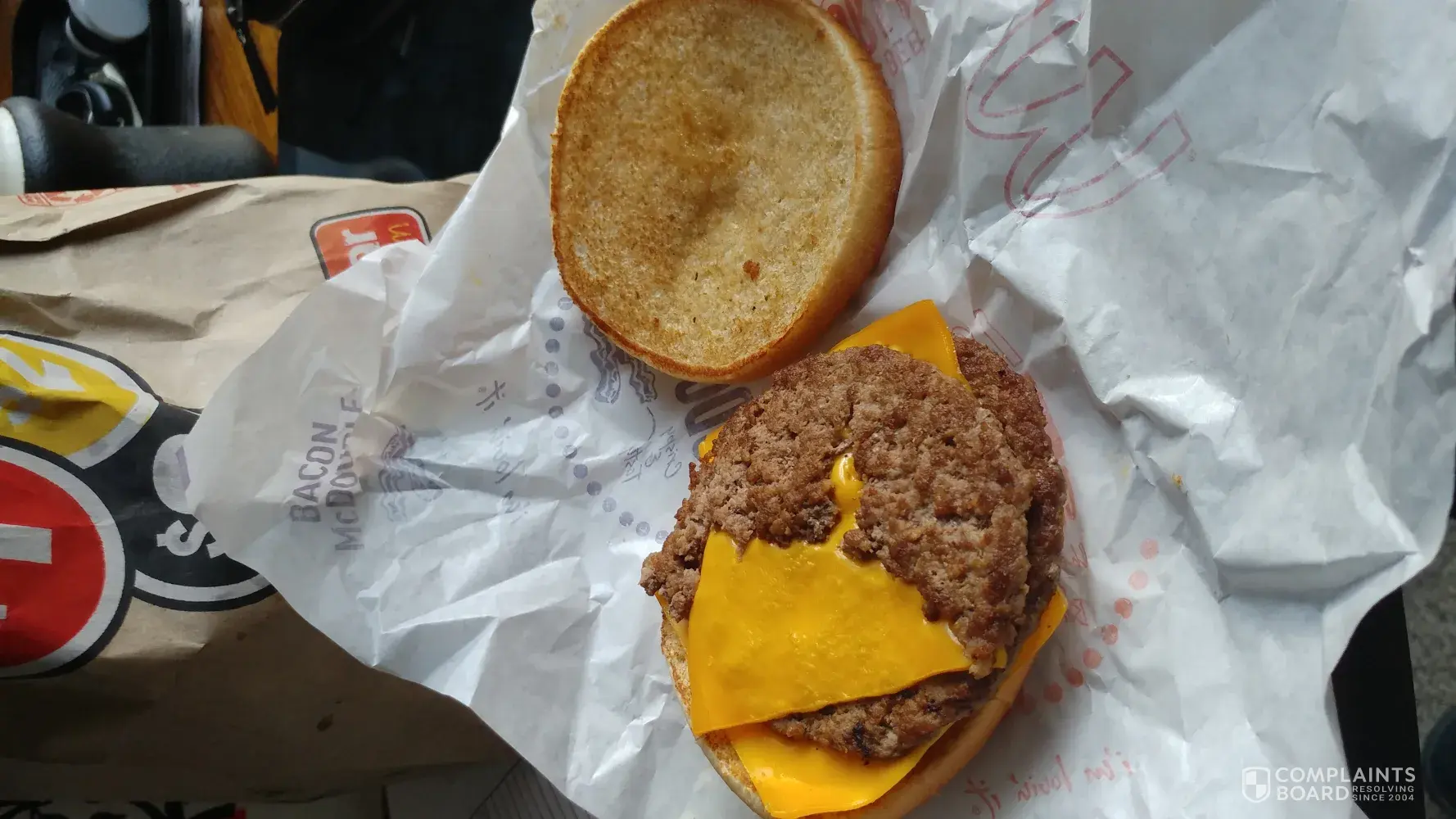 First my double cheese burger was suppose to be a double, I had half pattie and a whole one...the bottom bun was hard...the fries was hard and tasteless...the apple pie was burnt