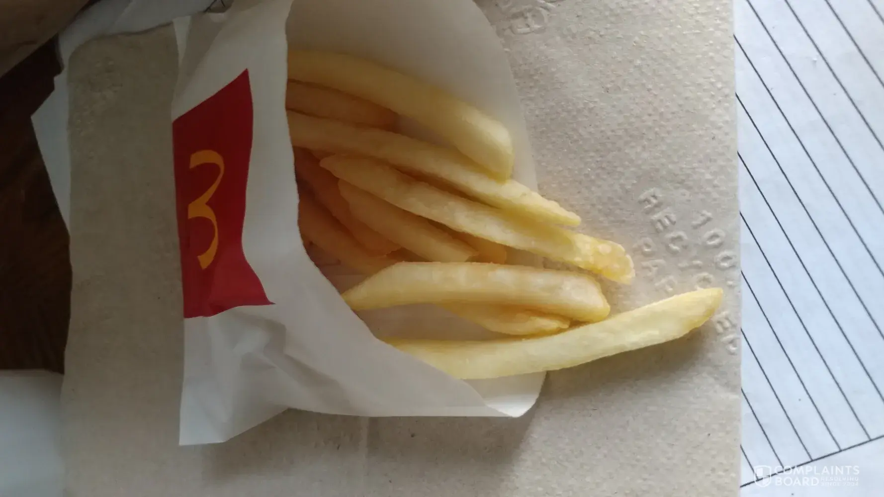 I ordered 2 big Macs 2 cheese burgers to receive 4 cheese burgers it is supposed to come with a 2 the family chips it came with 4 small chips which were about half full, dripping oil and cold . I would appreciate it of my problem was rectified as I spend a lot of money there, and I'd be keeping a good eye on what Ur staff do with the utensils