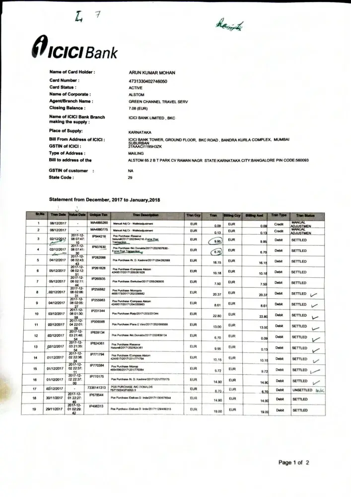 The same amount i. e 6, 70 EUR charged twice. The bank statement is attached for the reference. You can observe the same in the 4th row of the bank statement in the Description referred as "Pos Purchase /Mc Donald's/[protected]/937630- Force Pos Transaction"