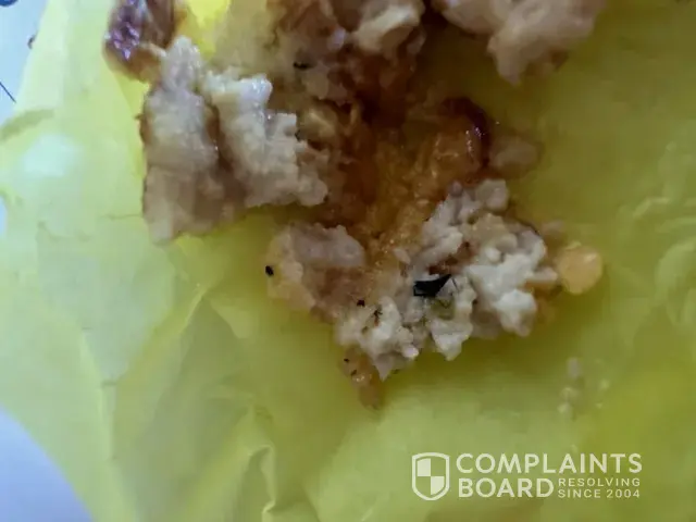 Today 05/30/23 at about 12:10pm today I got Mc chickens with nothing but cheese and mac sauce on it and the first one i ate was fine the second one i was chewing and crunch crunch between my and spit it out in my hand and there glass in my food