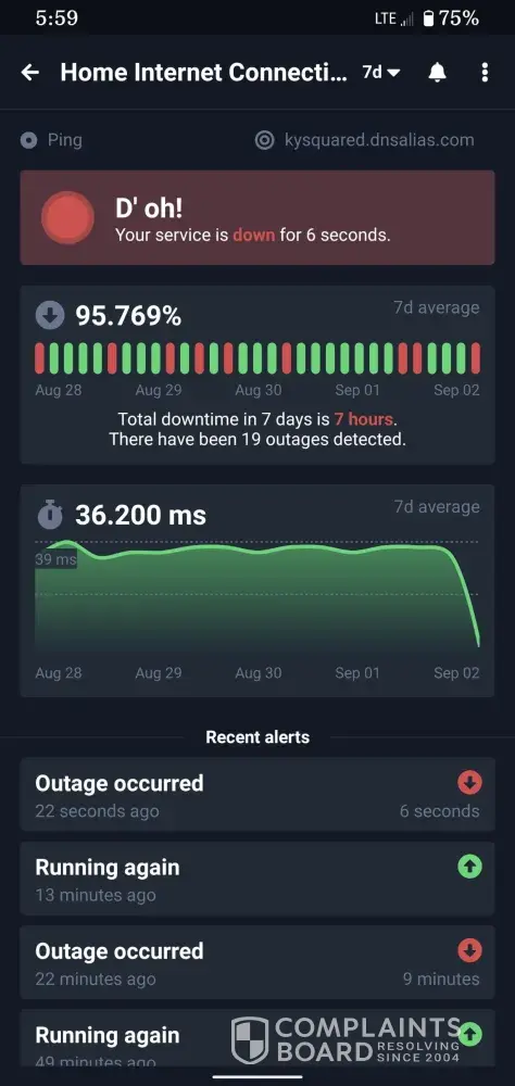 I complained about choppy internet connection to them and they can not send a tech for almost 5 days. I did requested them that my kids school are online and their education is suffering.
