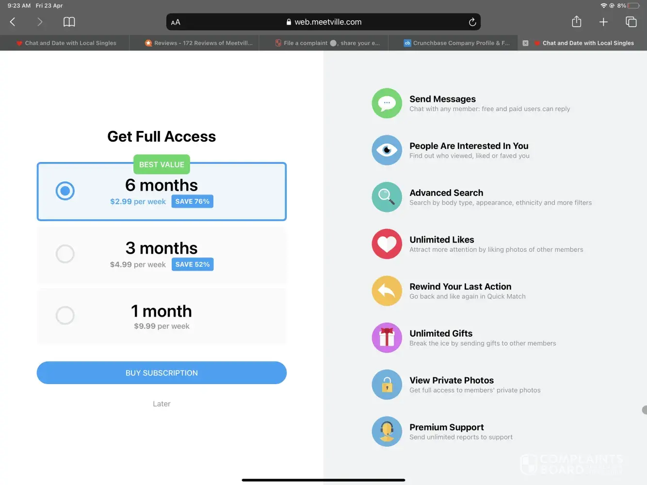 my account is being over charged. the amount I had agreed on was 2.99 a week and I was charged 79 and change for the entire six months plus I got charged again for another 22 dollars. I can't get into the meetville site which was a big let down. I am requesting a refund on this site. Plus spykit.co is also billing me. who is spykit? I can be reached @ [protected] or email me at [protected]@msn.com
